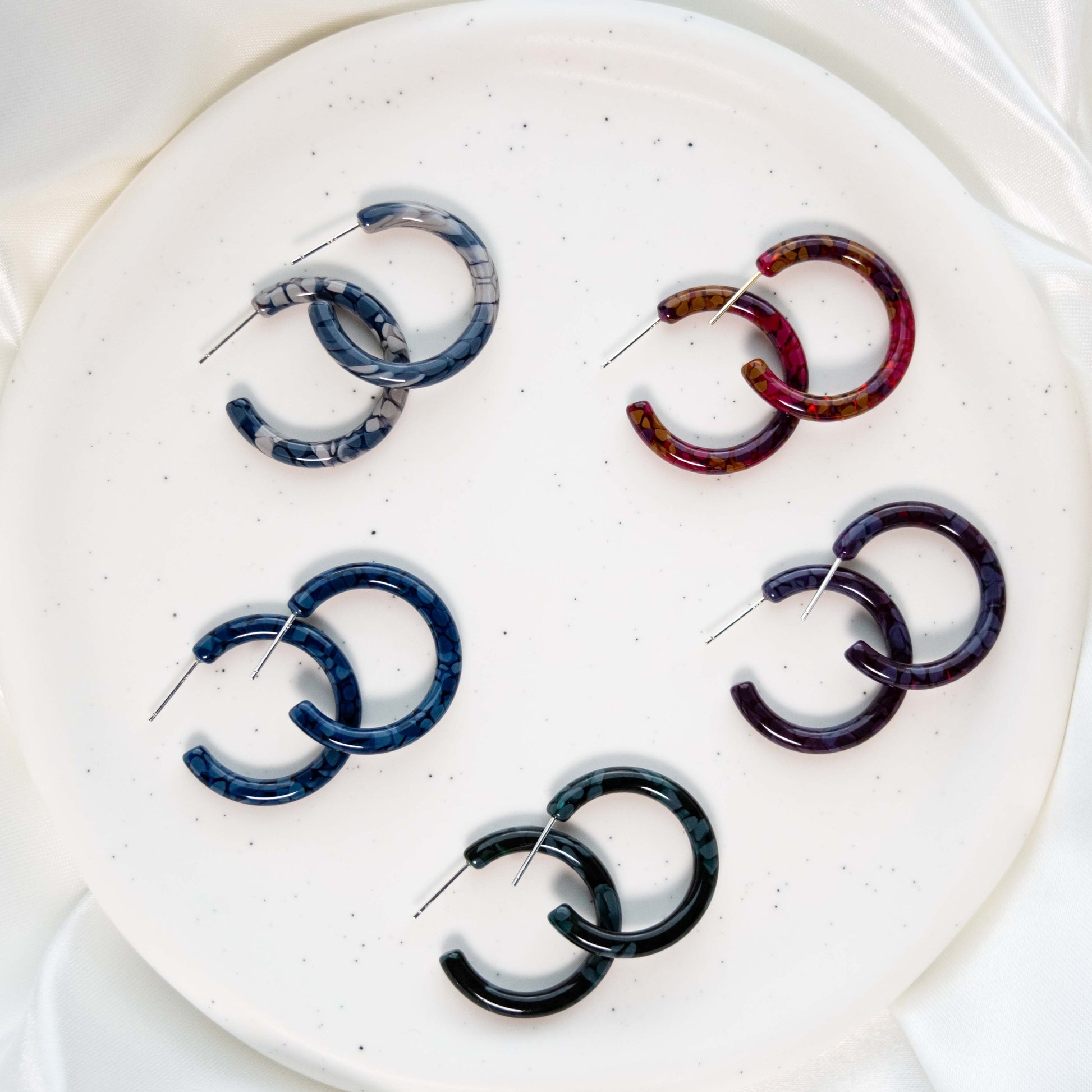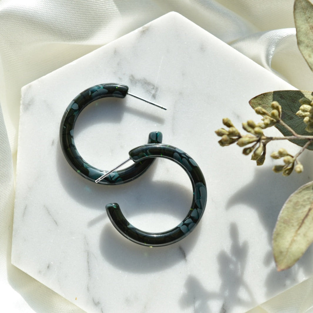 30mm Thin Round Hoops Flora Collection | Floral Hydrangea Hoop Earrings Cellulose Acetate 925 Sterling Silver Posts