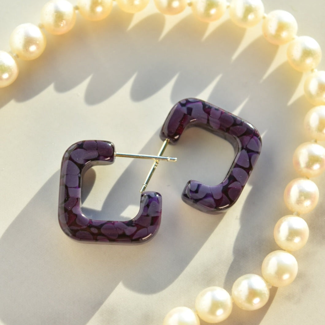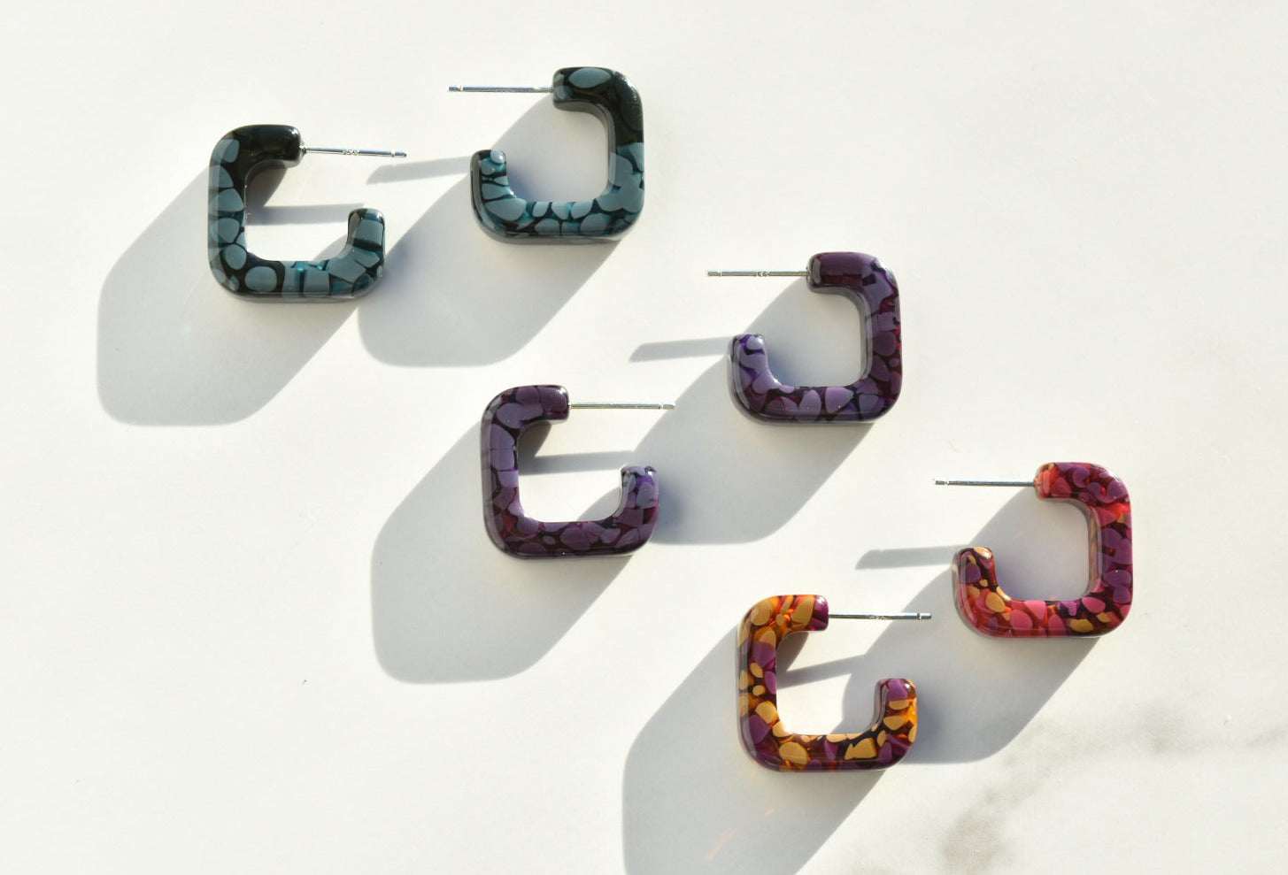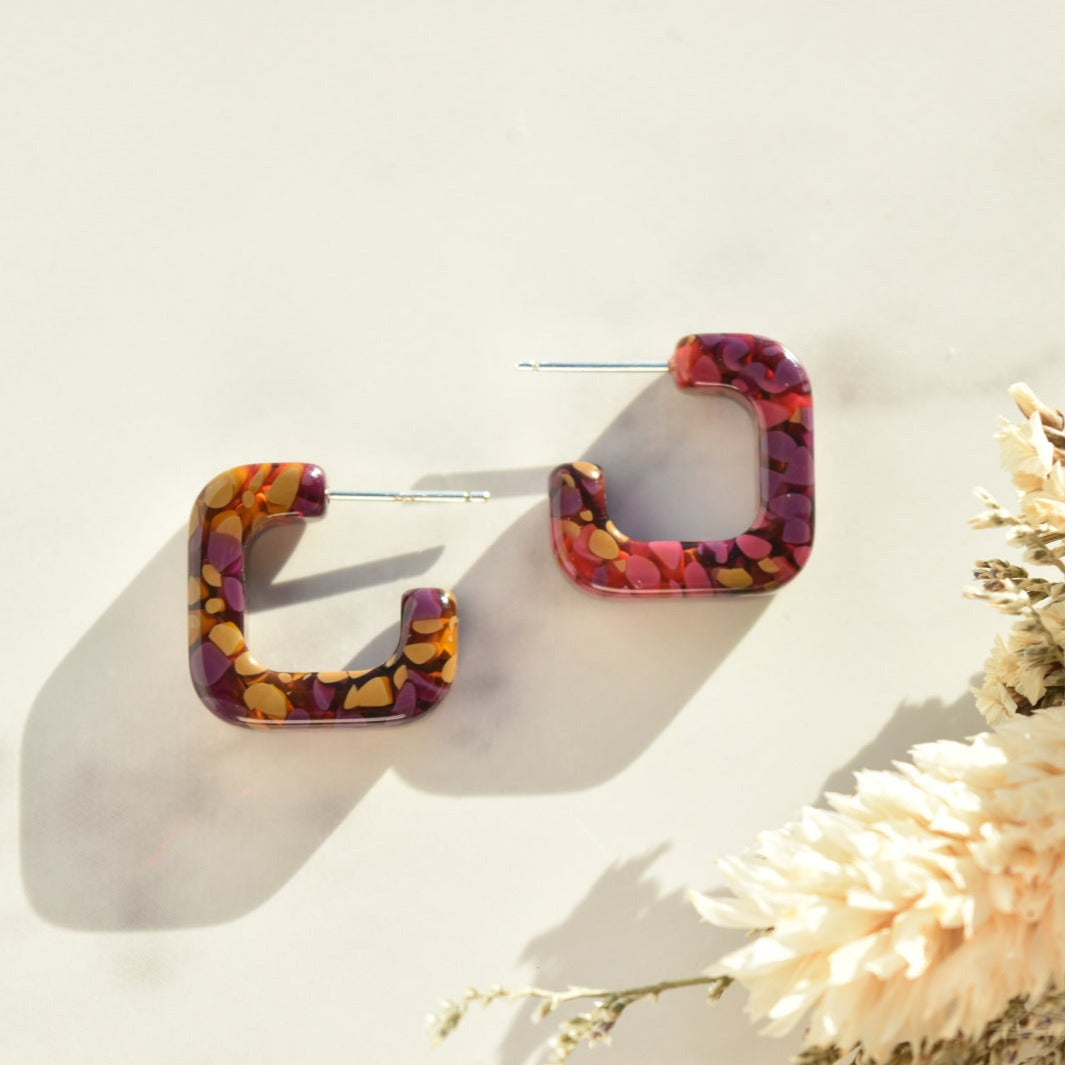 Mini Geo Hoops Flora Collection | Geometric Modern Funky Square Colorful Tortoise Shell Acetate Resin Hoop Earrings