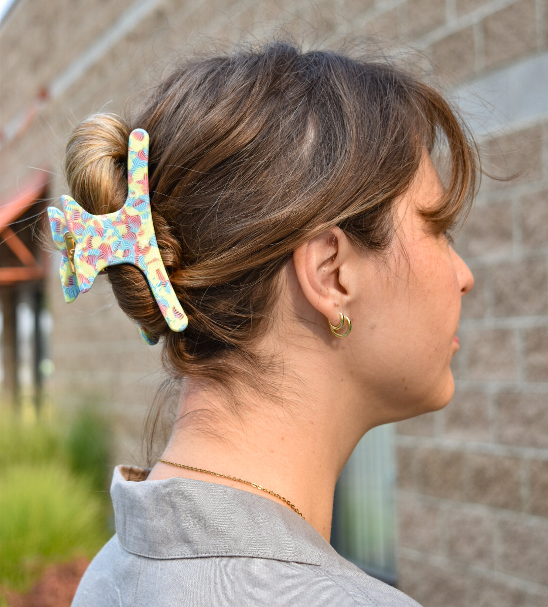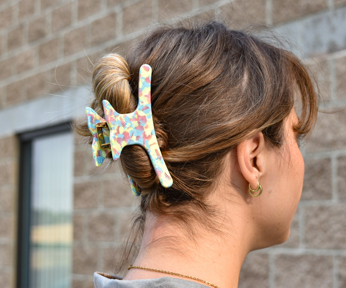 Whale XL French Claw in Coral | Colorful Yellow Pink Blue | Italian Acetate and Stainless Steel Hair Claw Clip