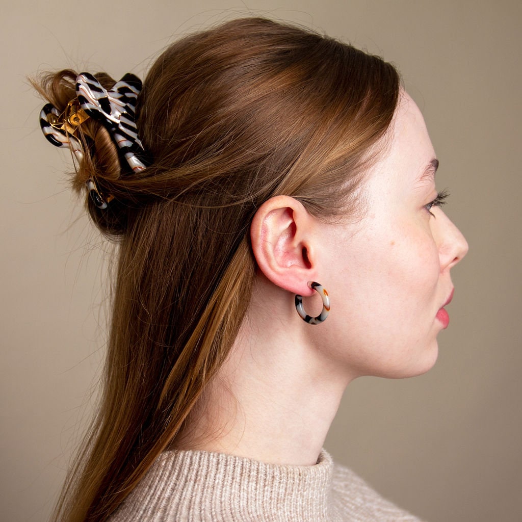 French Hair Claw in Granite | Dark Grey and Light Grey Swirled Marble Hair Clip Claw Cellulose Acetate Stainless Steel