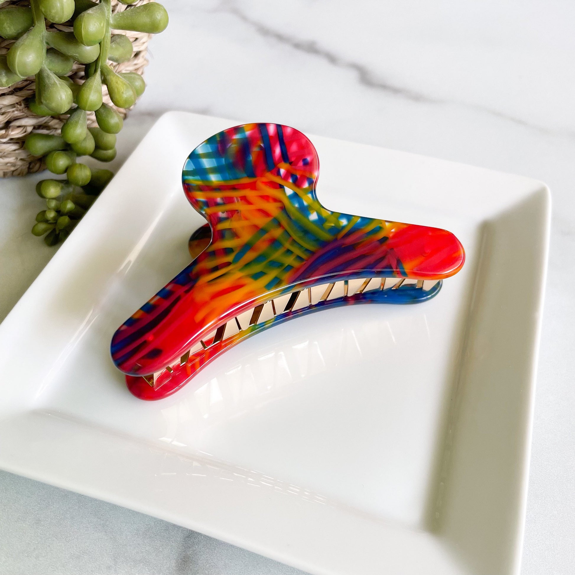 French Hair Claw in Macaw | Red Blue Yellow Tropical Parrot Hair Clip Acetate Stainless Steel