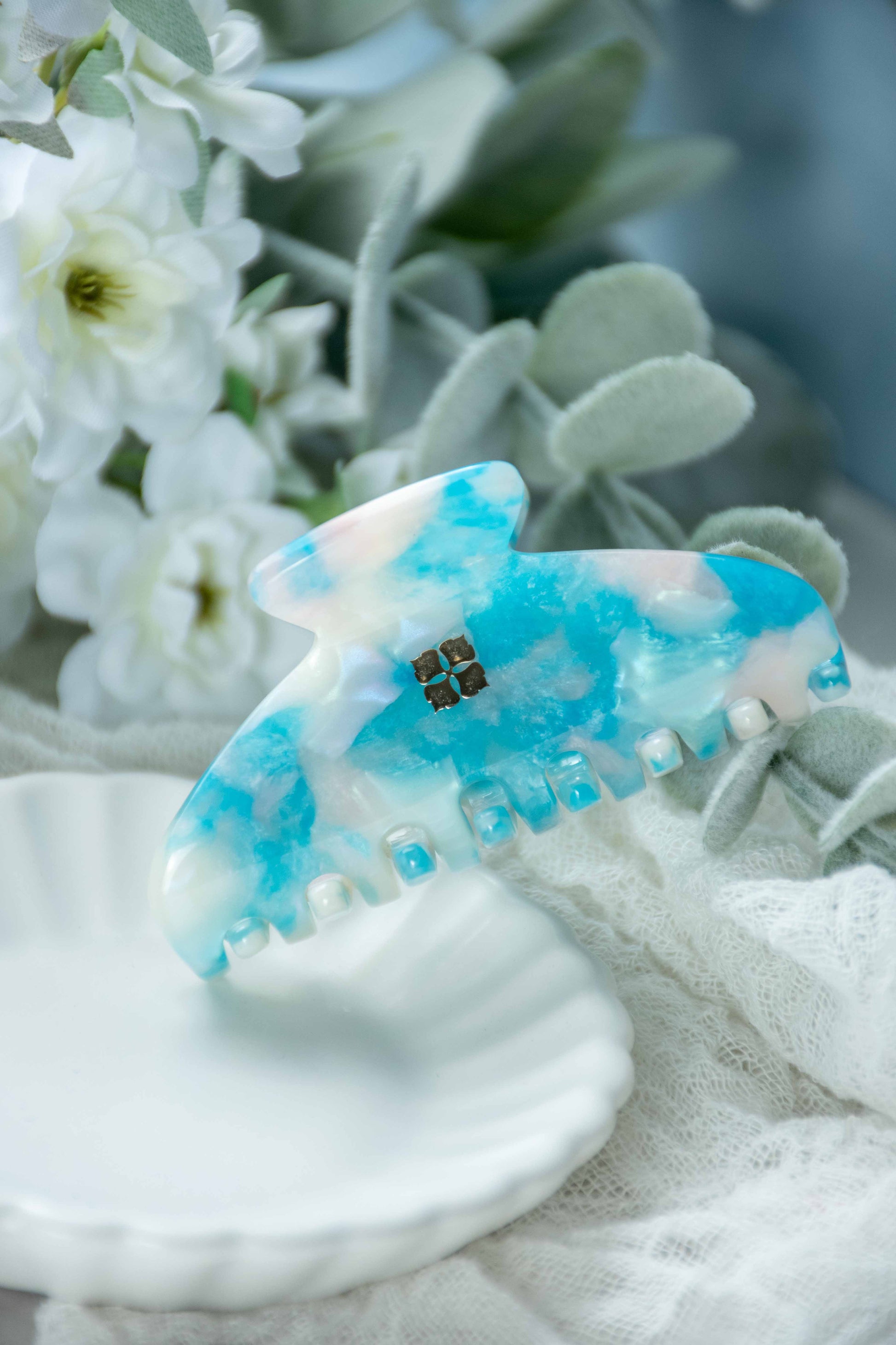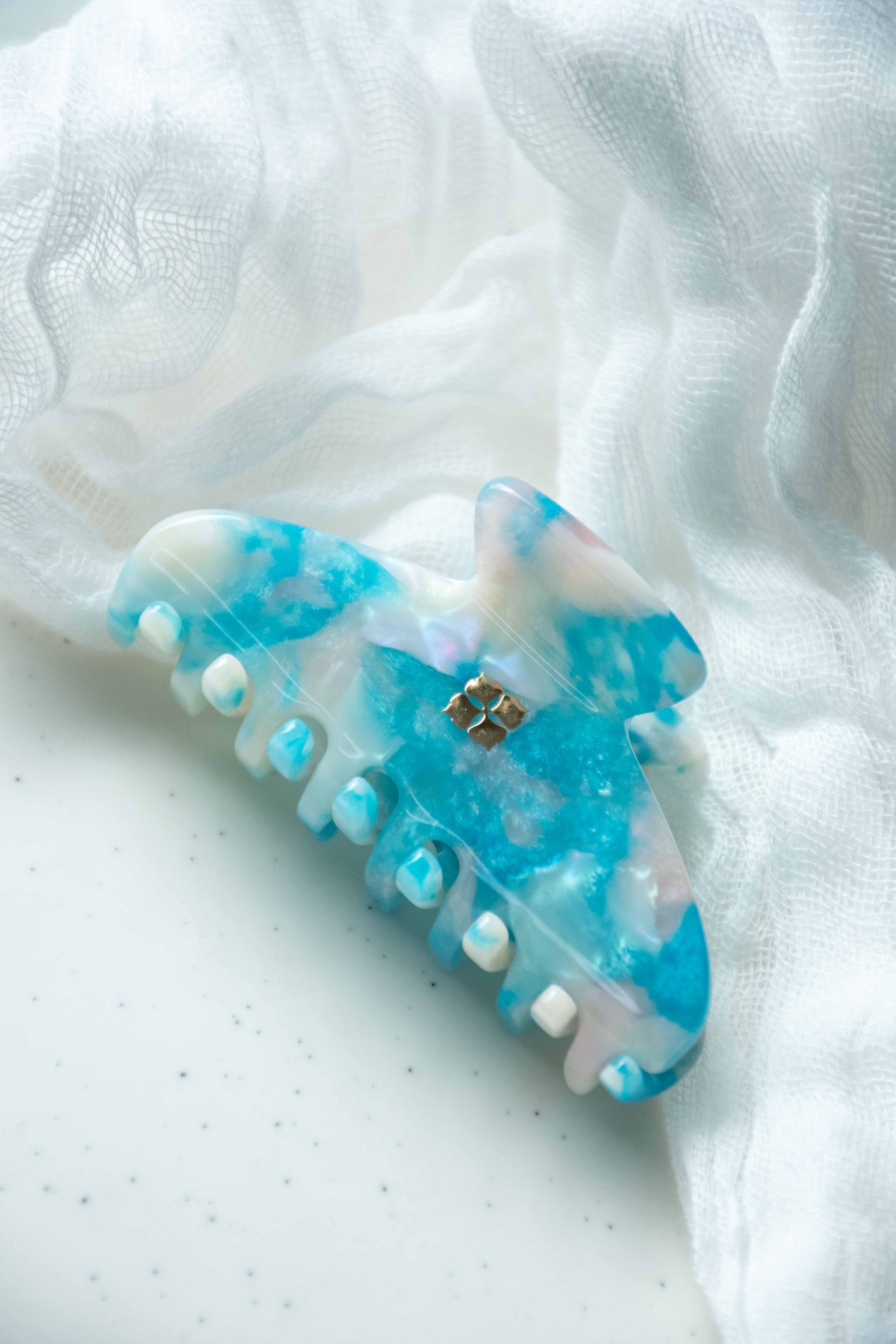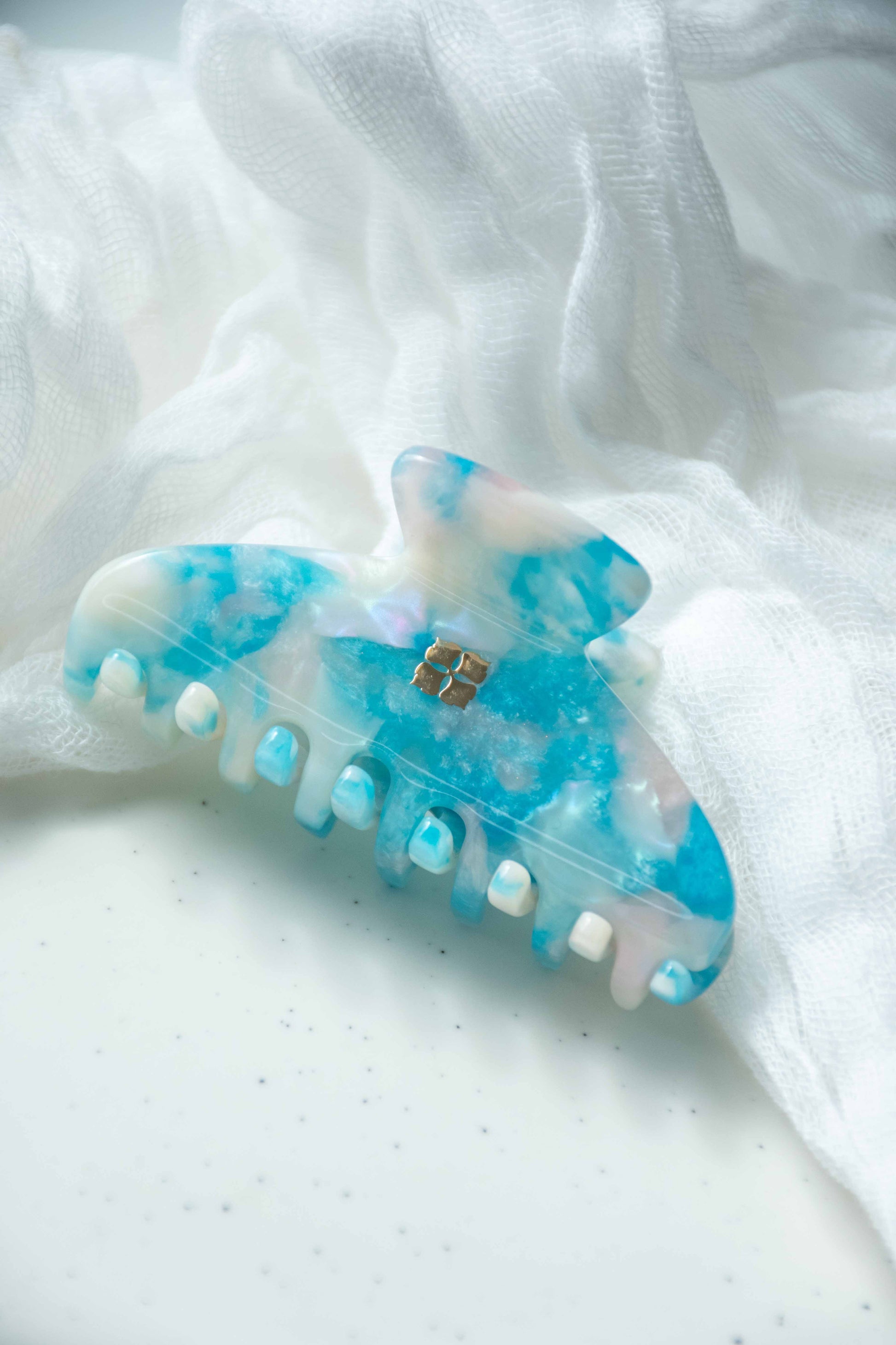 Glamour Grip Mini Claw in Blue Beryl | Blue White Pink Shimmer | Italian Acetate Tortoise Shell Small Hair Clip