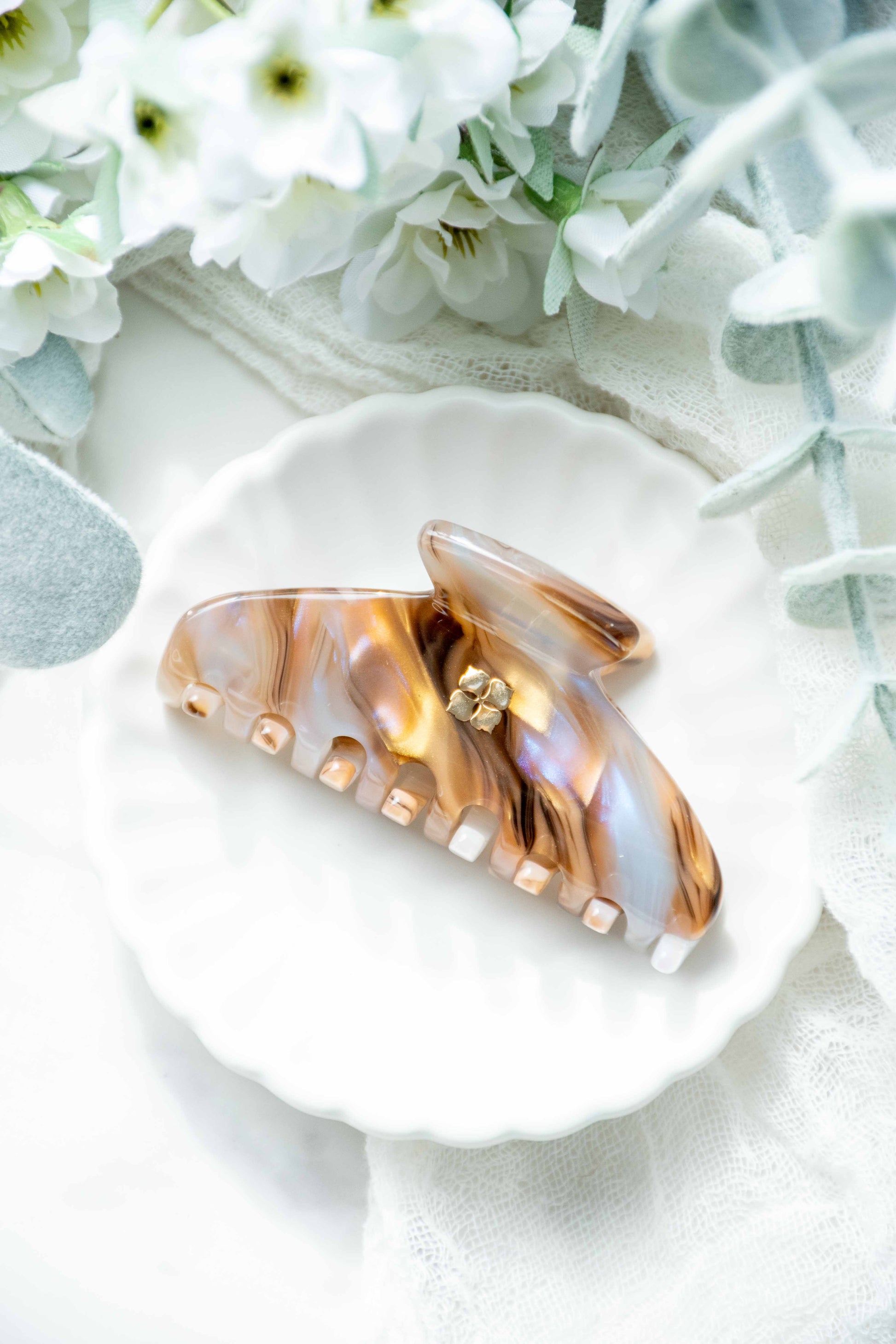 Glamour Grip Mini Claw in Ametrine | Bronze Gold Lavender | Italian Acetate Tortoise Shell Small Hair Clip