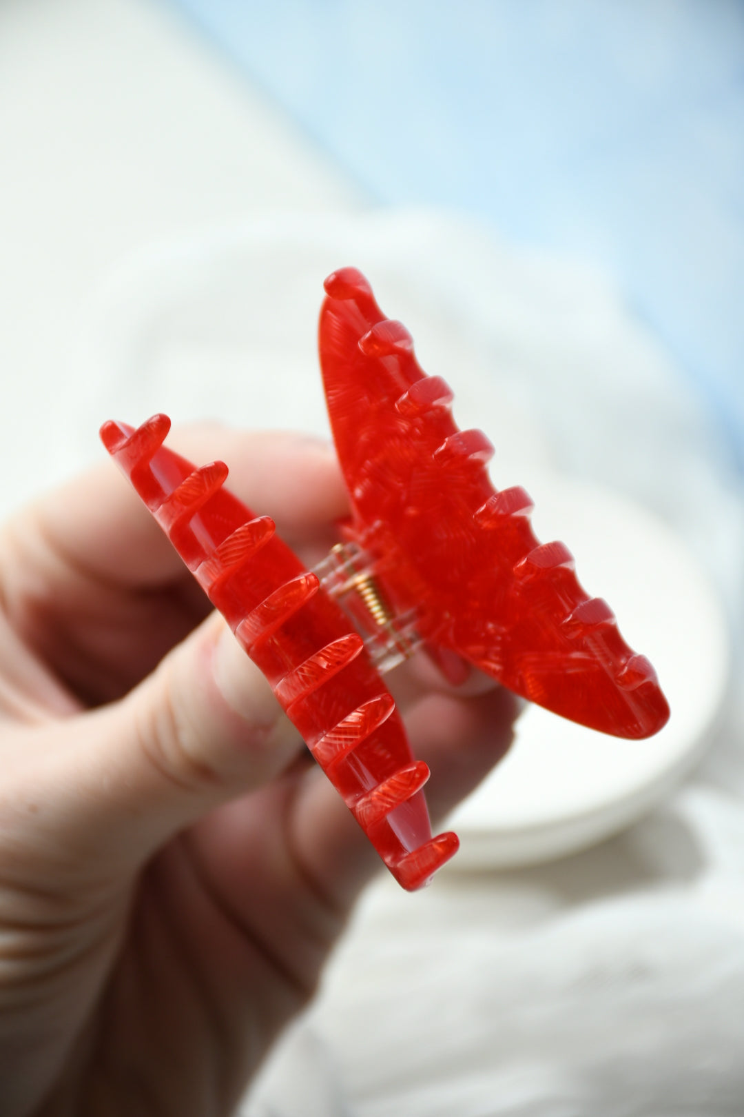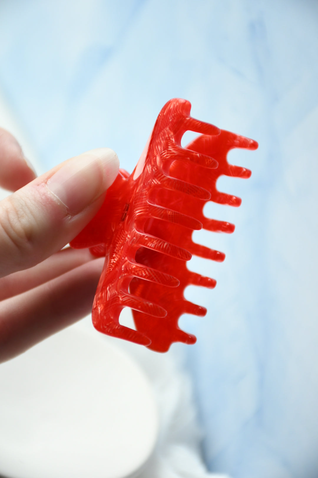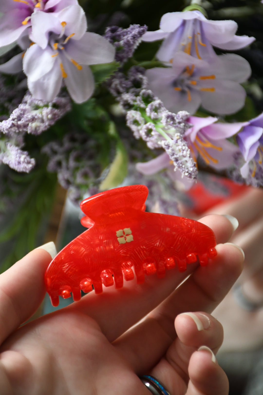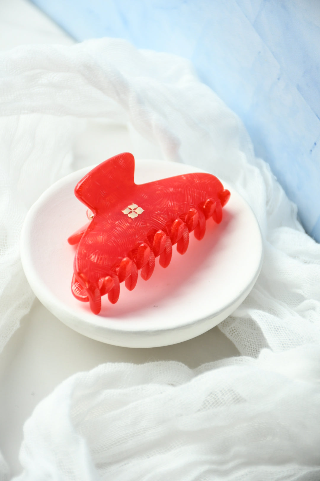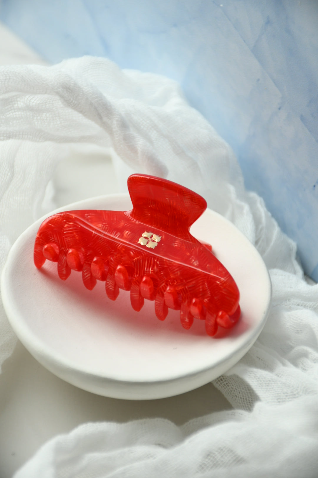 Glamour Grip Mini Claw in Red Ruby | Vibrant Red | Italian Acetate Tortoise Shell Small Hair Clip