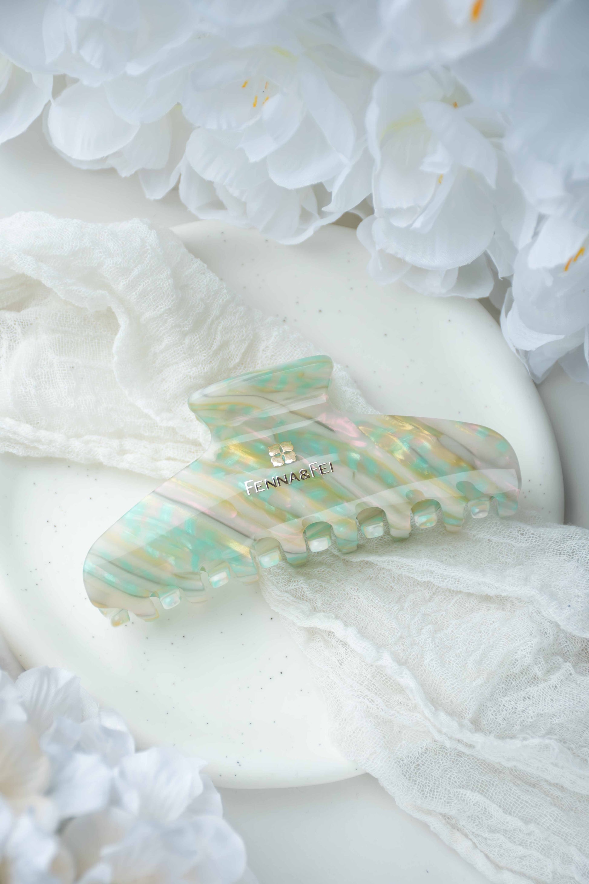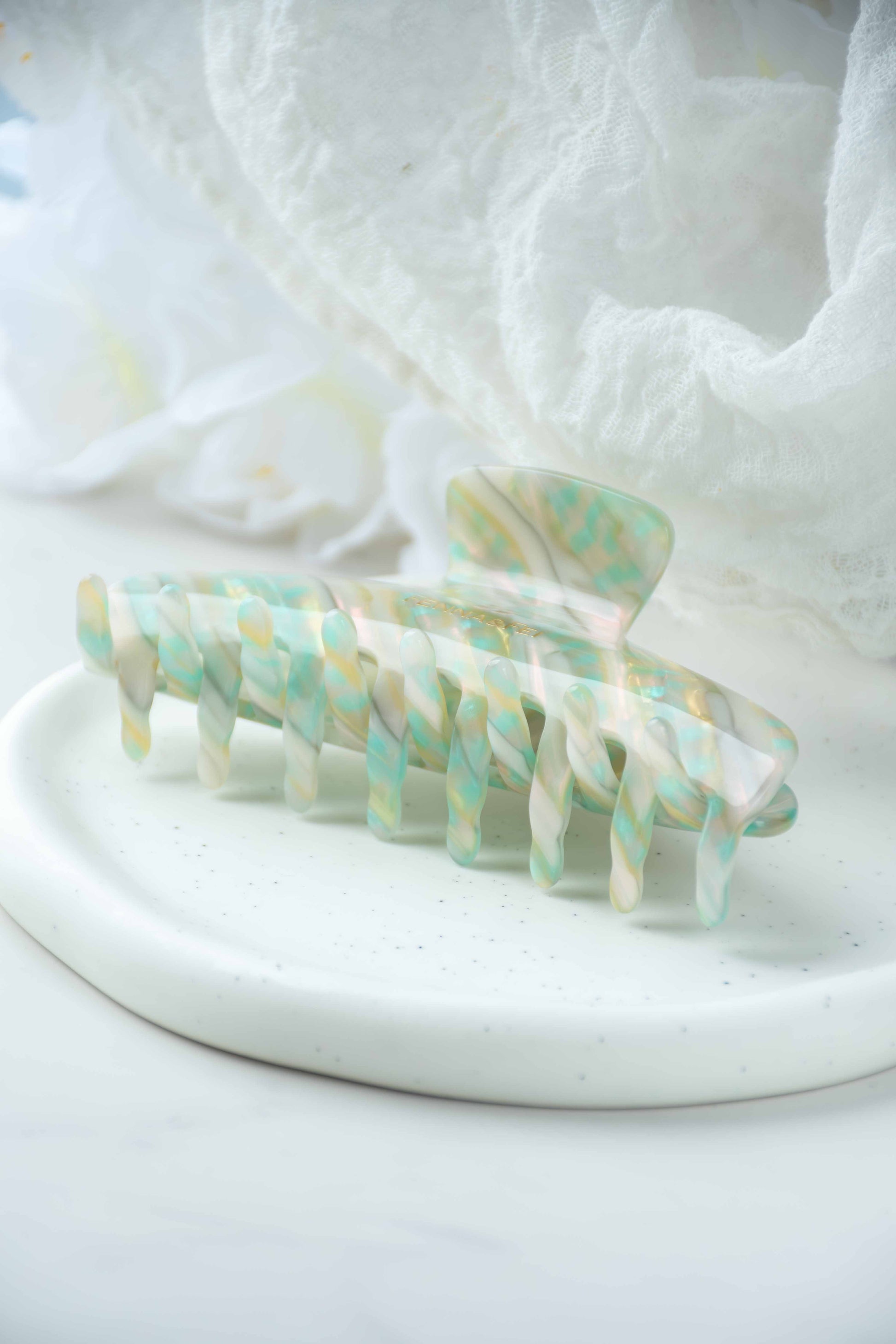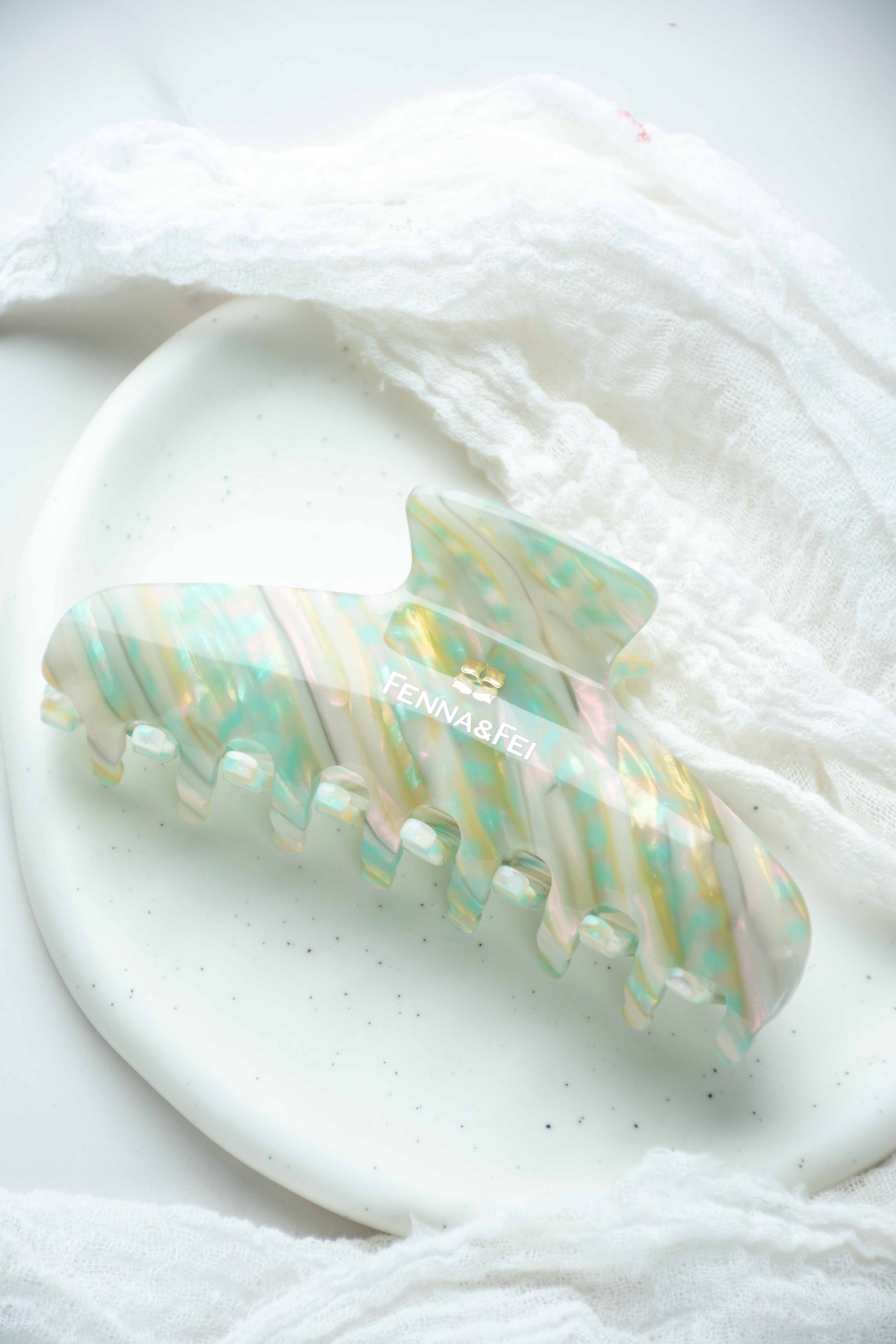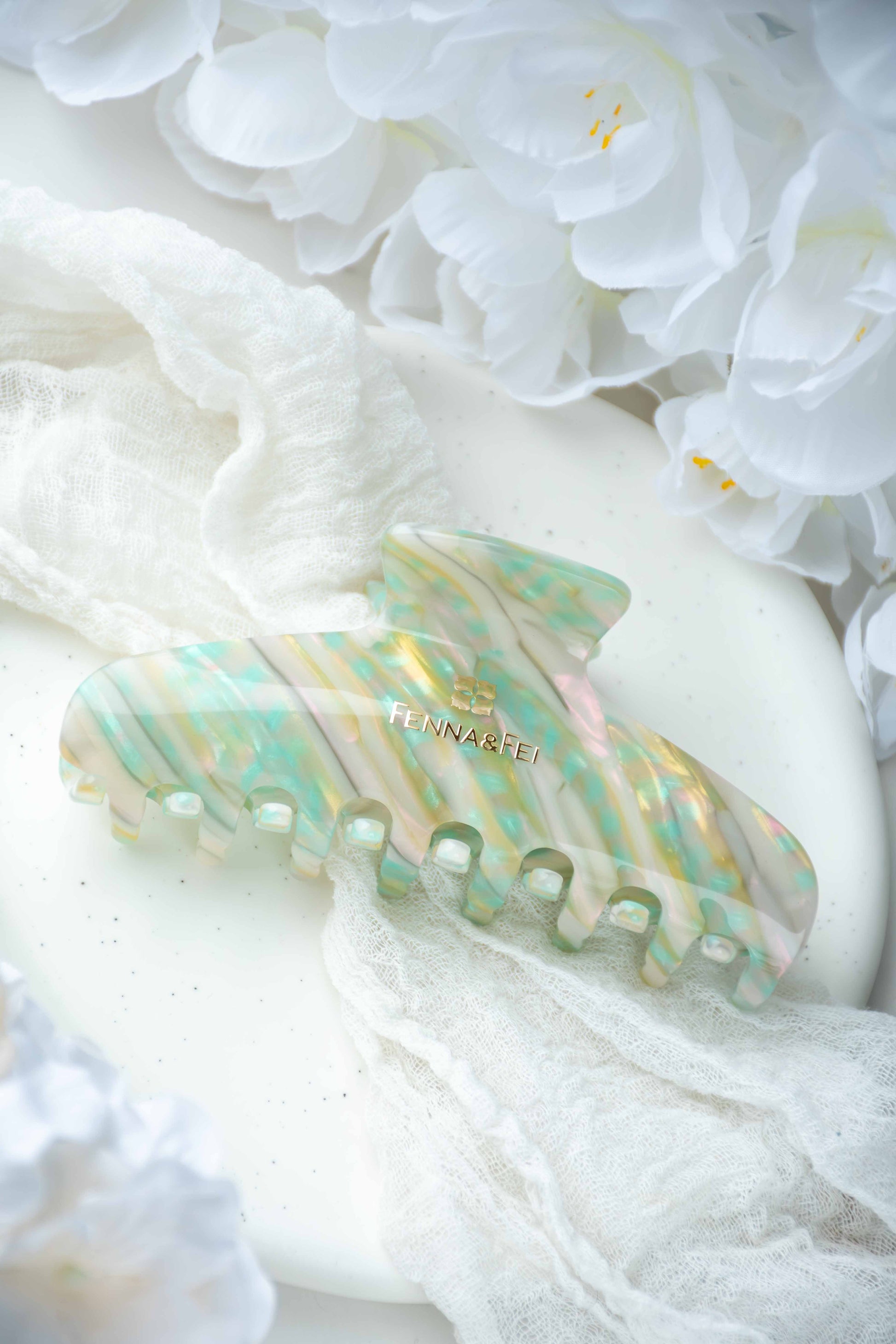 Glamour Grip Wave Claw in Desert Opal | White Green Pink Teal | Italian Acetate Tortoise Shell Large Hair Clip