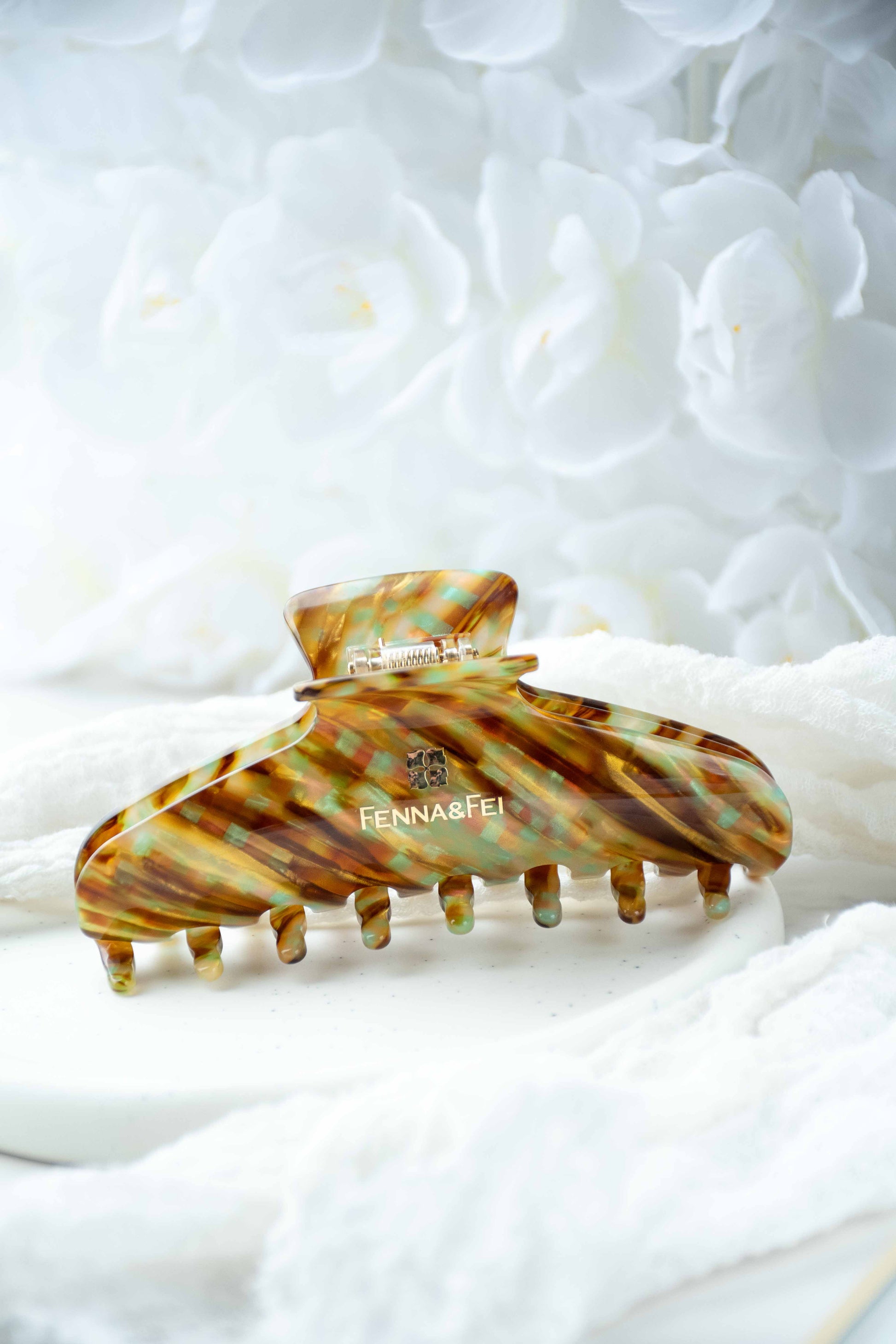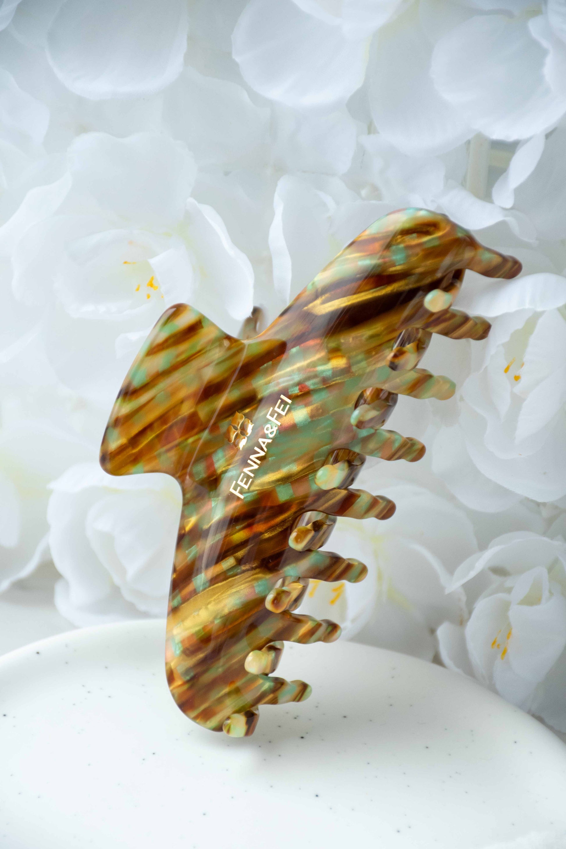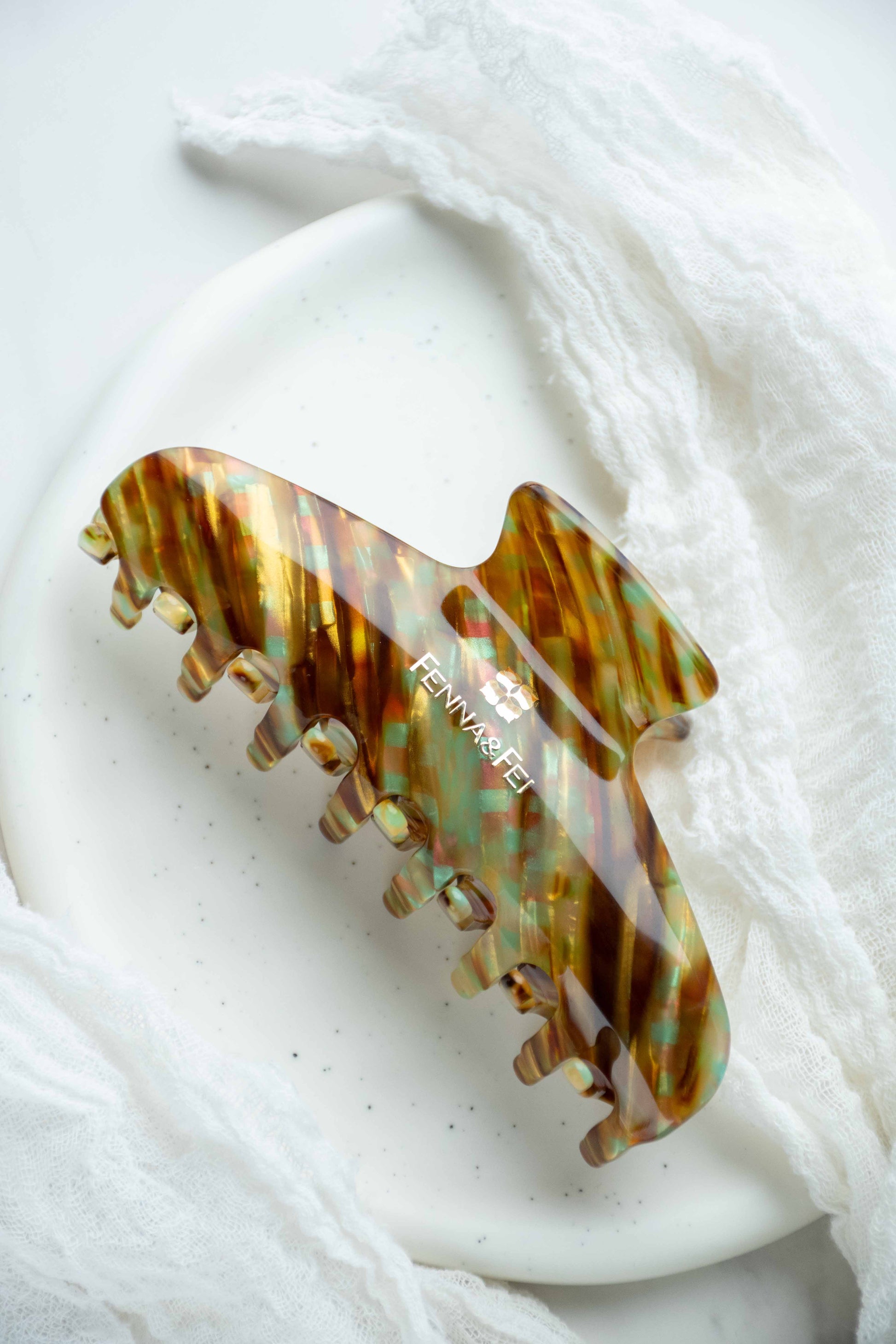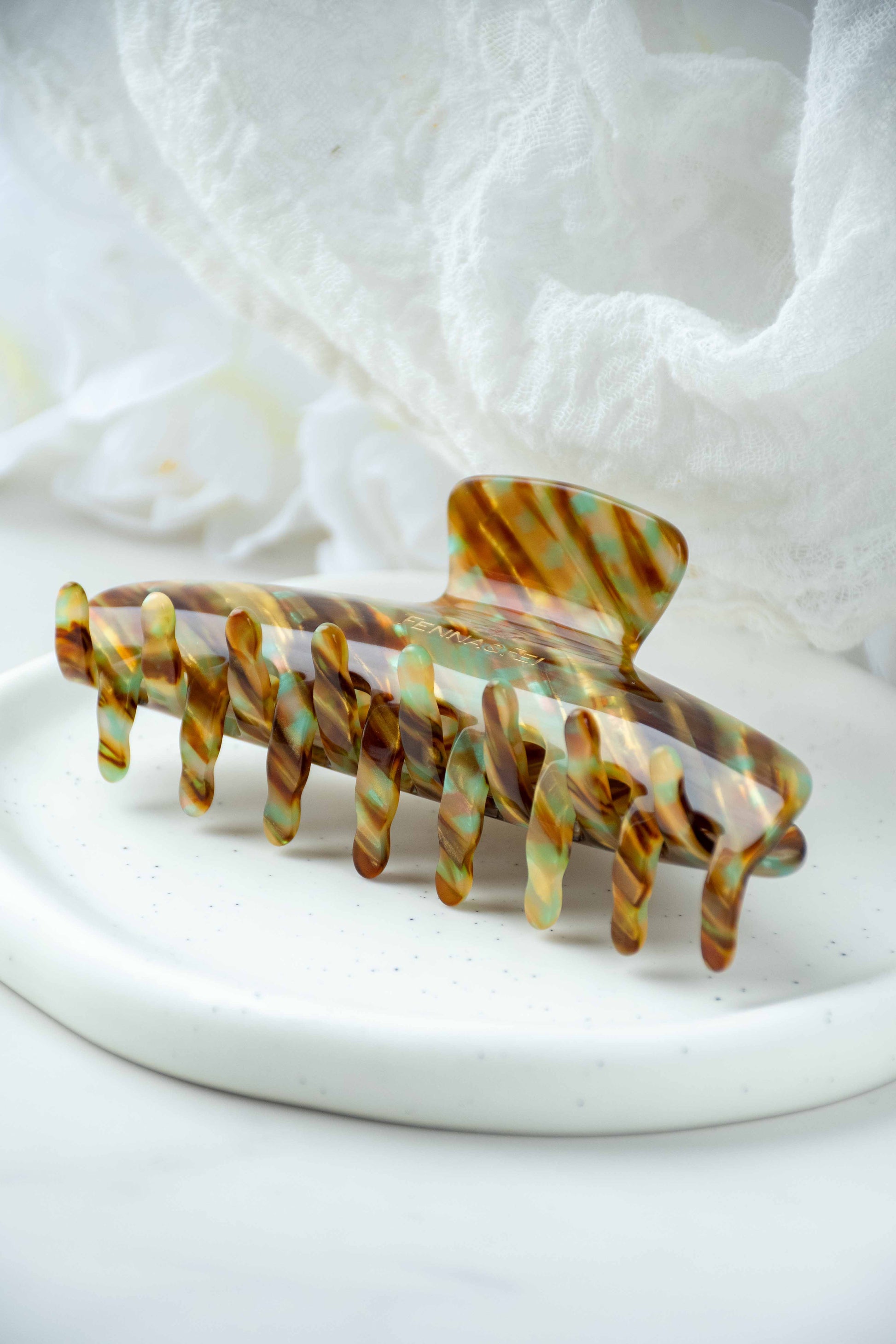 Glamour Grip Wave Claw in Fools Gold | Bronze Gold Teal Glamour Grip | Italian Acetate Tortoise Shell Large Hair Clip
