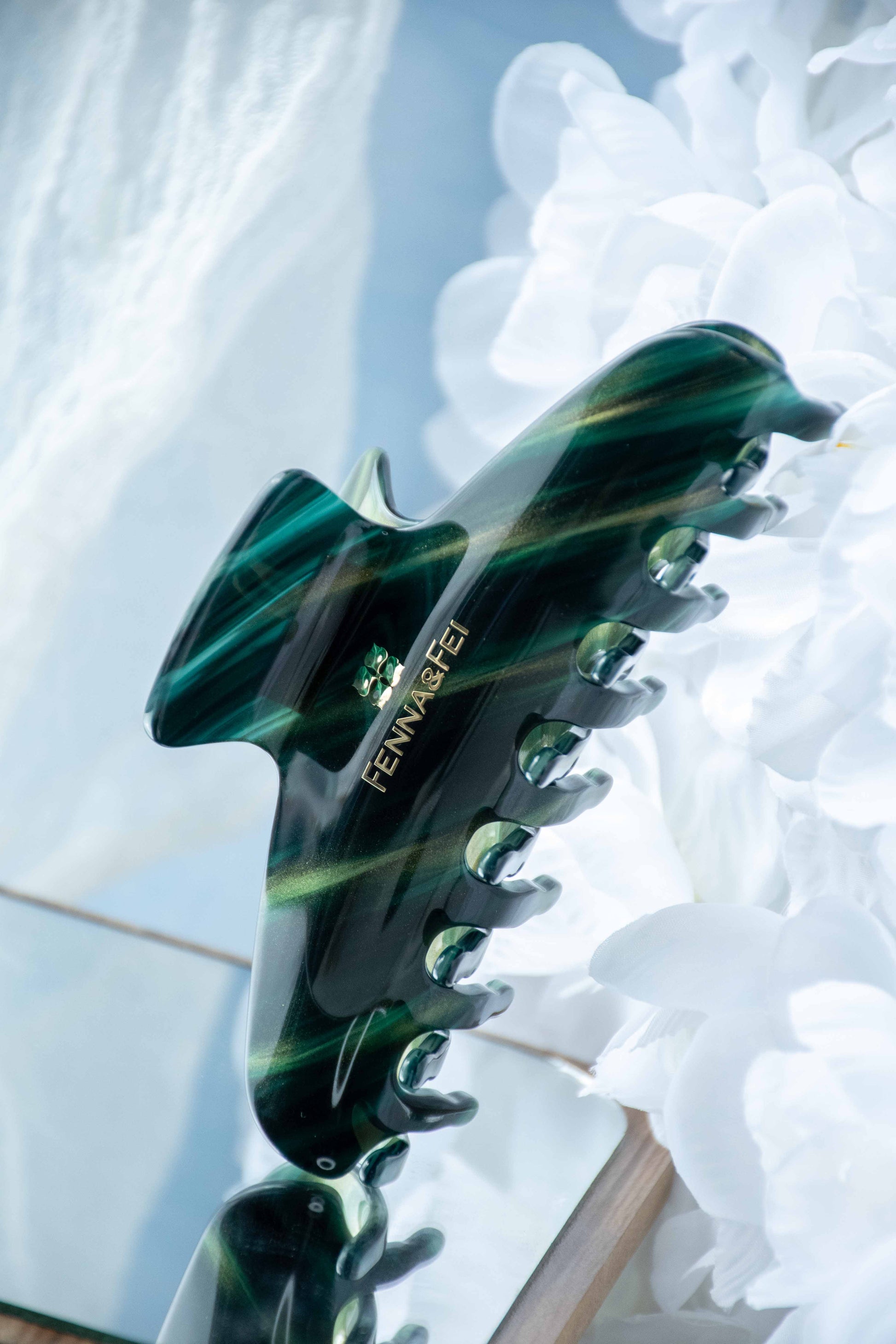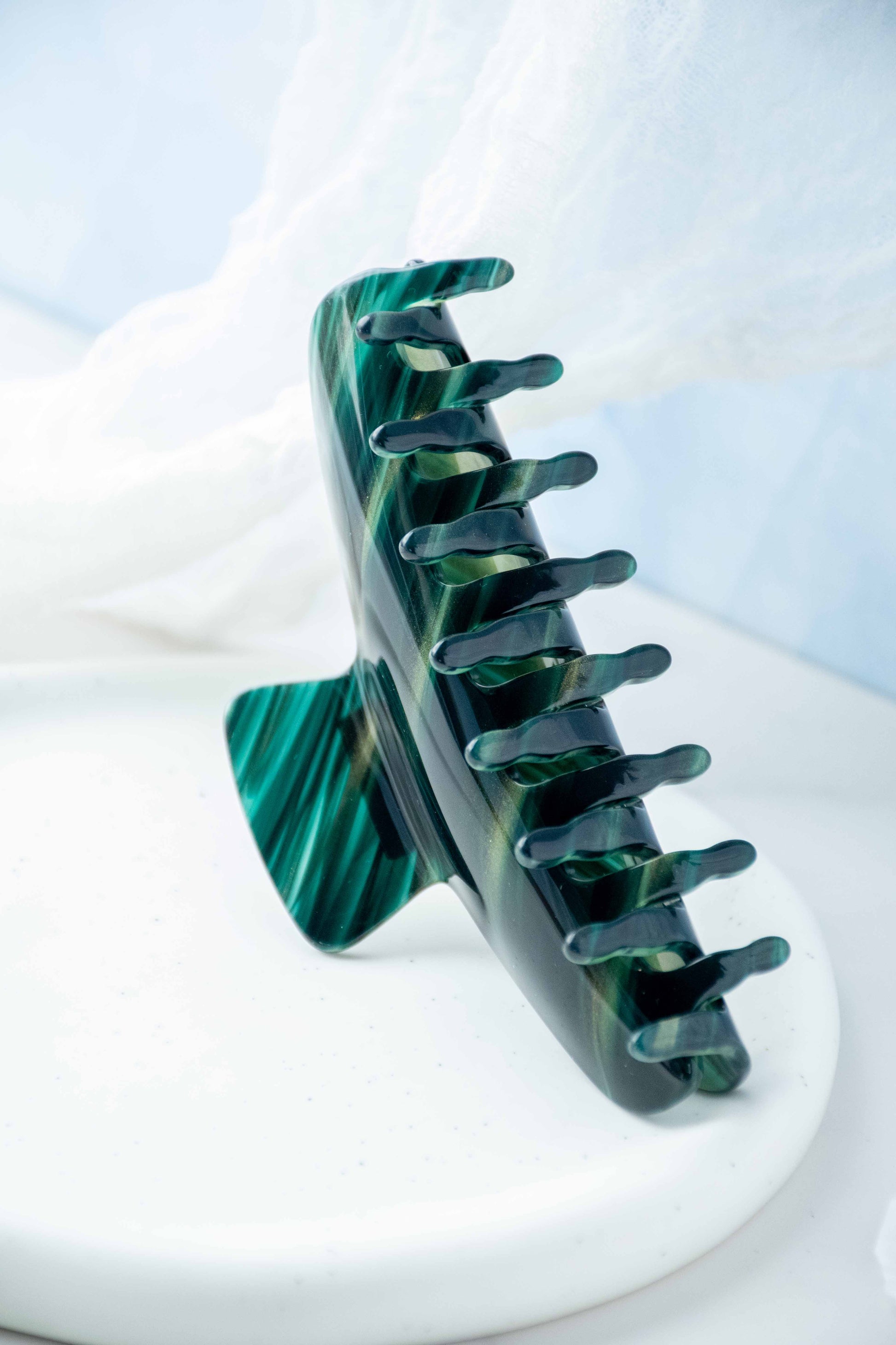 Glamour Grip Wave Claw in Roscoelite | Emerald Gold Shimmer | Italian Acetate Tortoise Shell Large Hair Clip