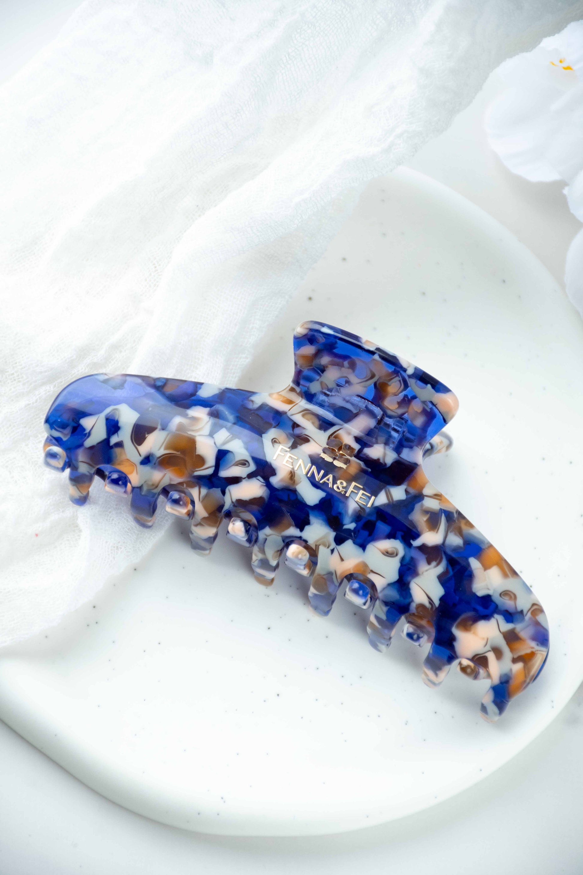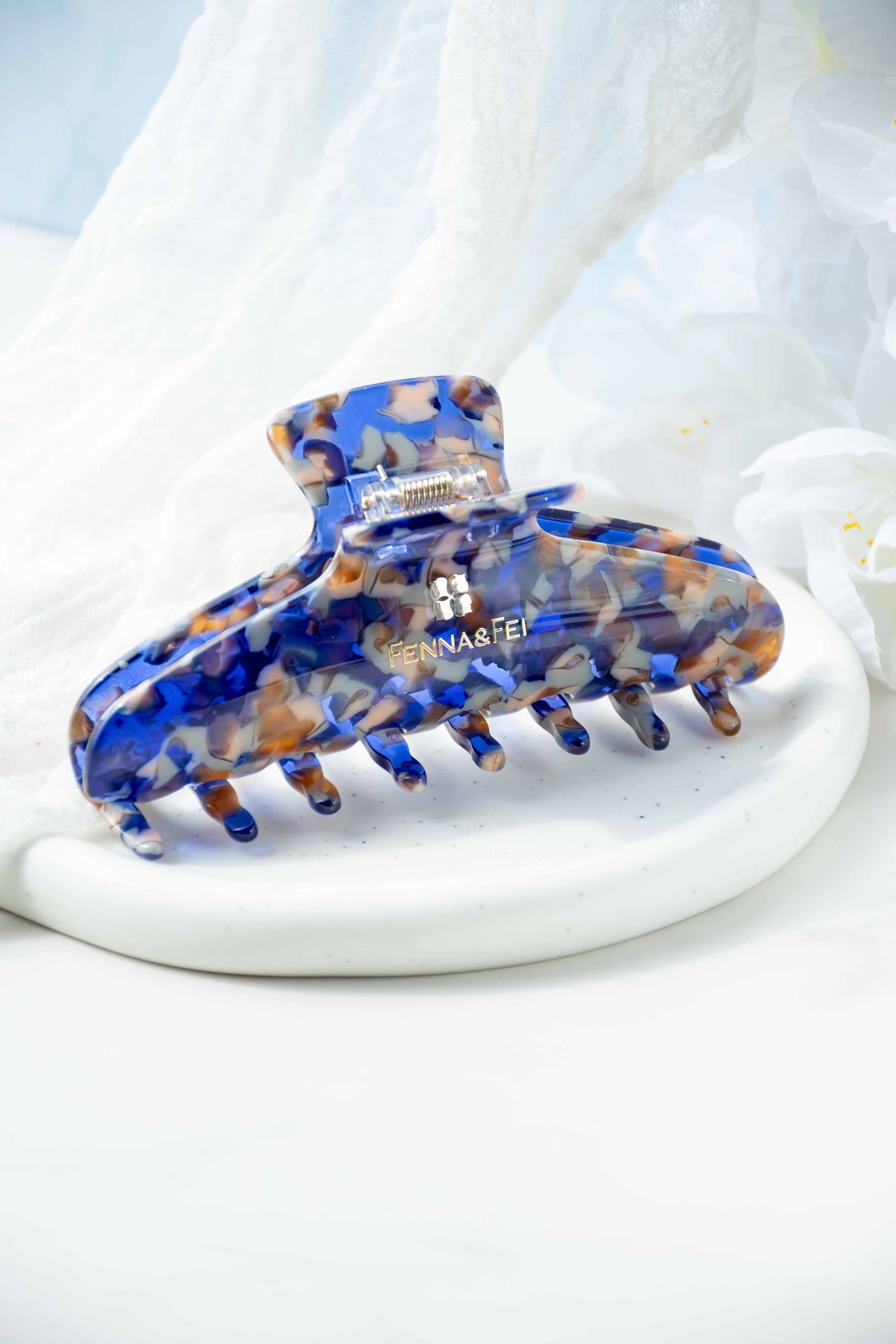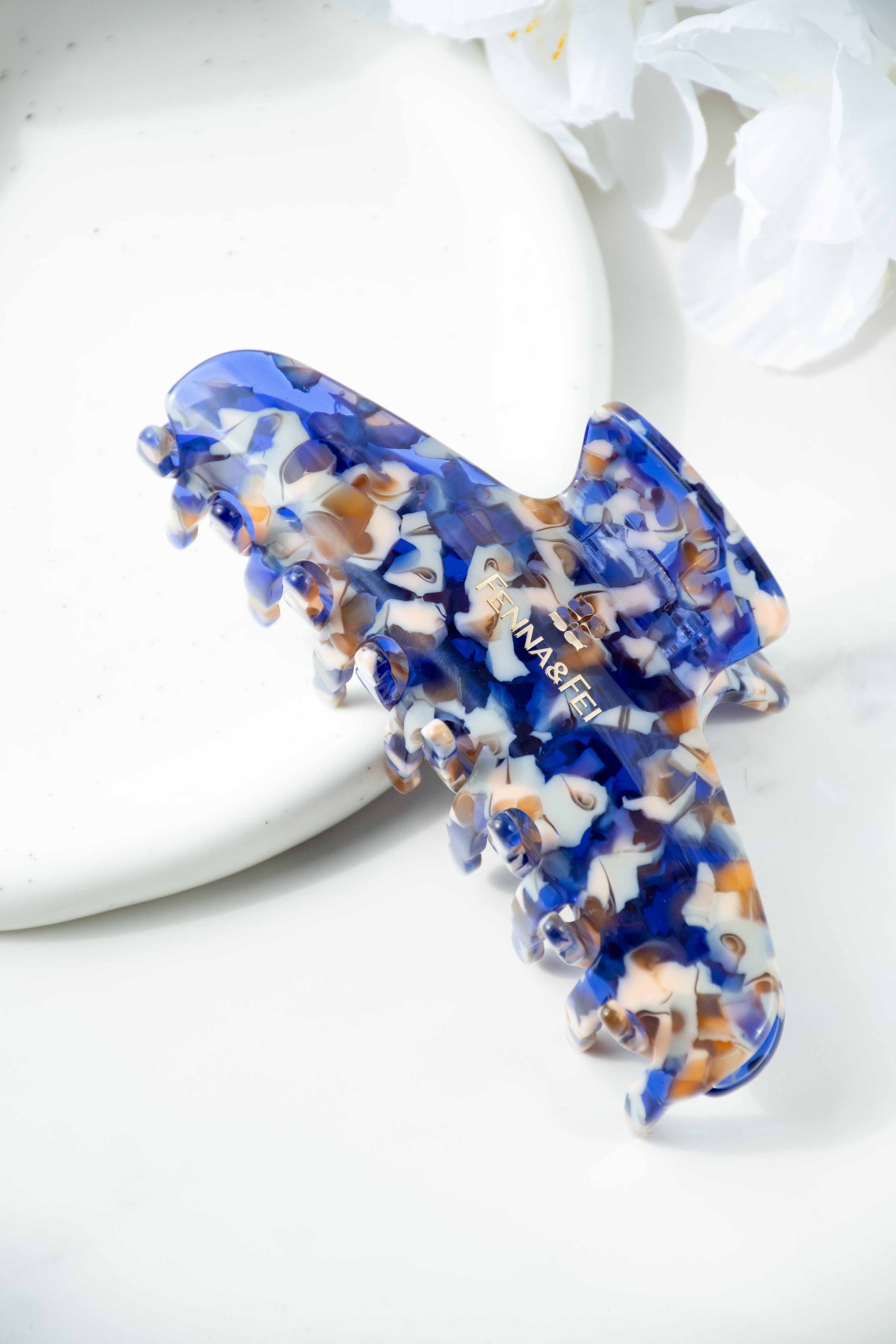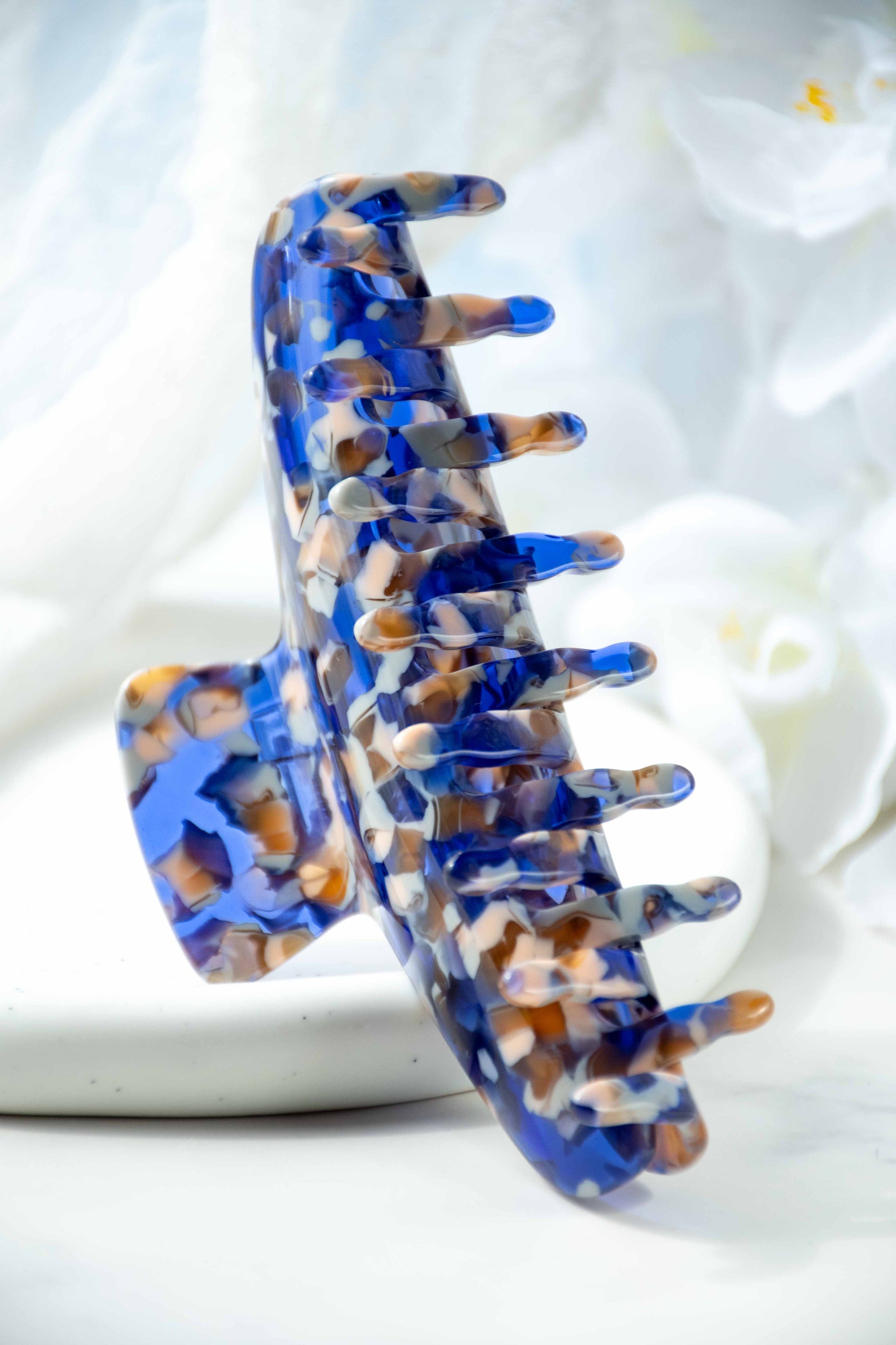 Glamour Grip Wave Claw in Sodalite | Blue White Brown | Italian Acetate Tortoise Shell Large Hair Clip