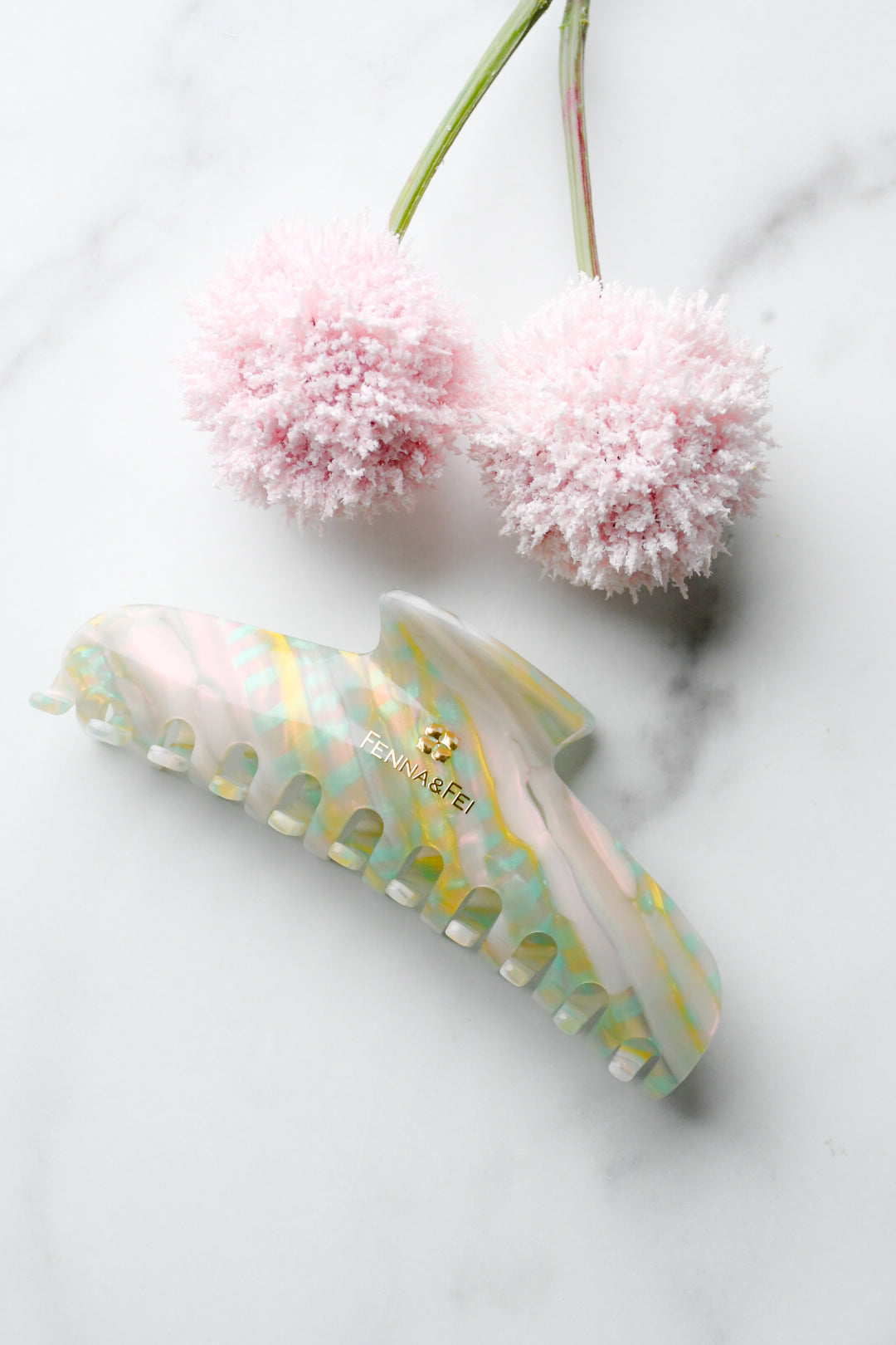 Glamour Grip XL Claw in Desert Opal | White Green Iridescent | Italian Acetate Tortoise Shell XL Hair Clip