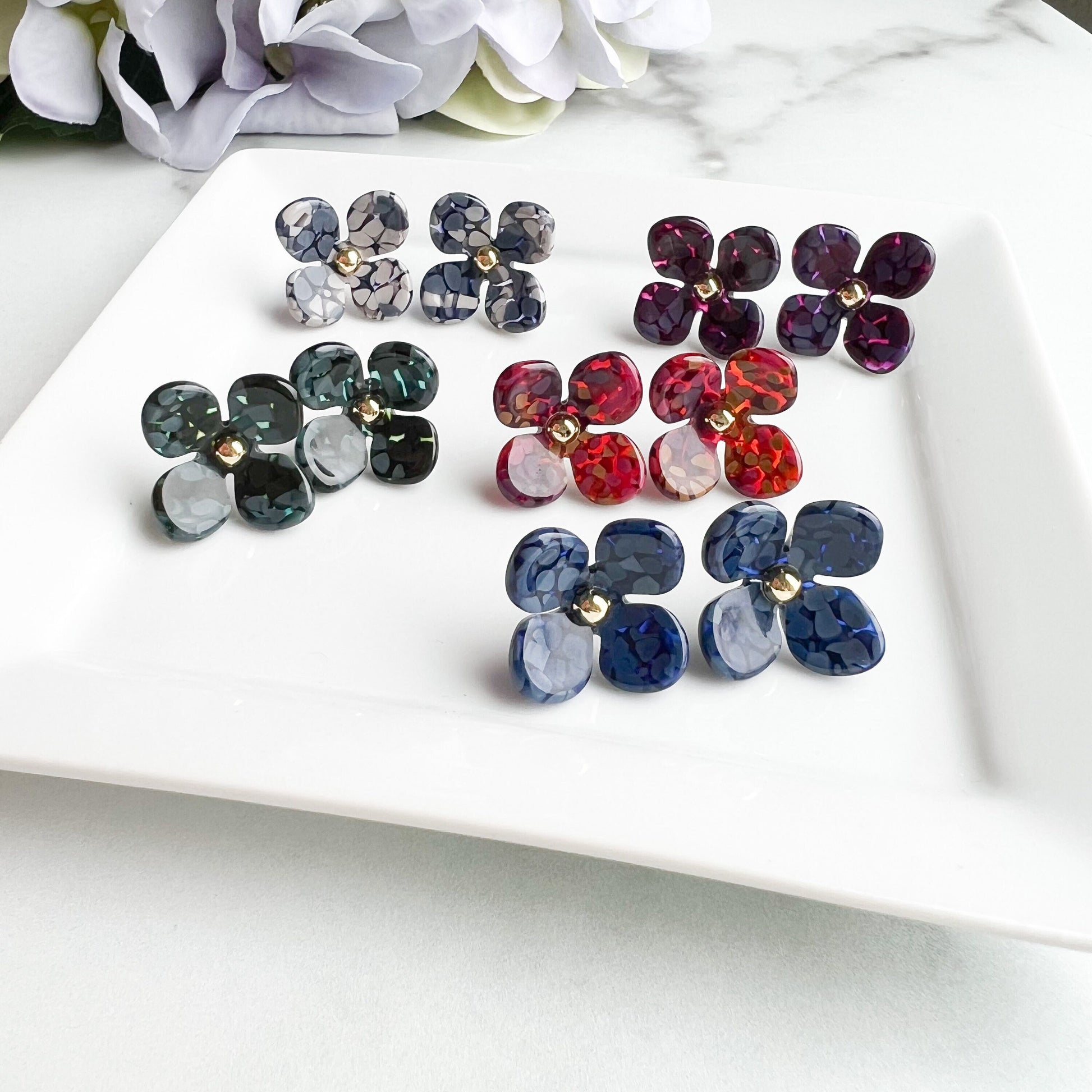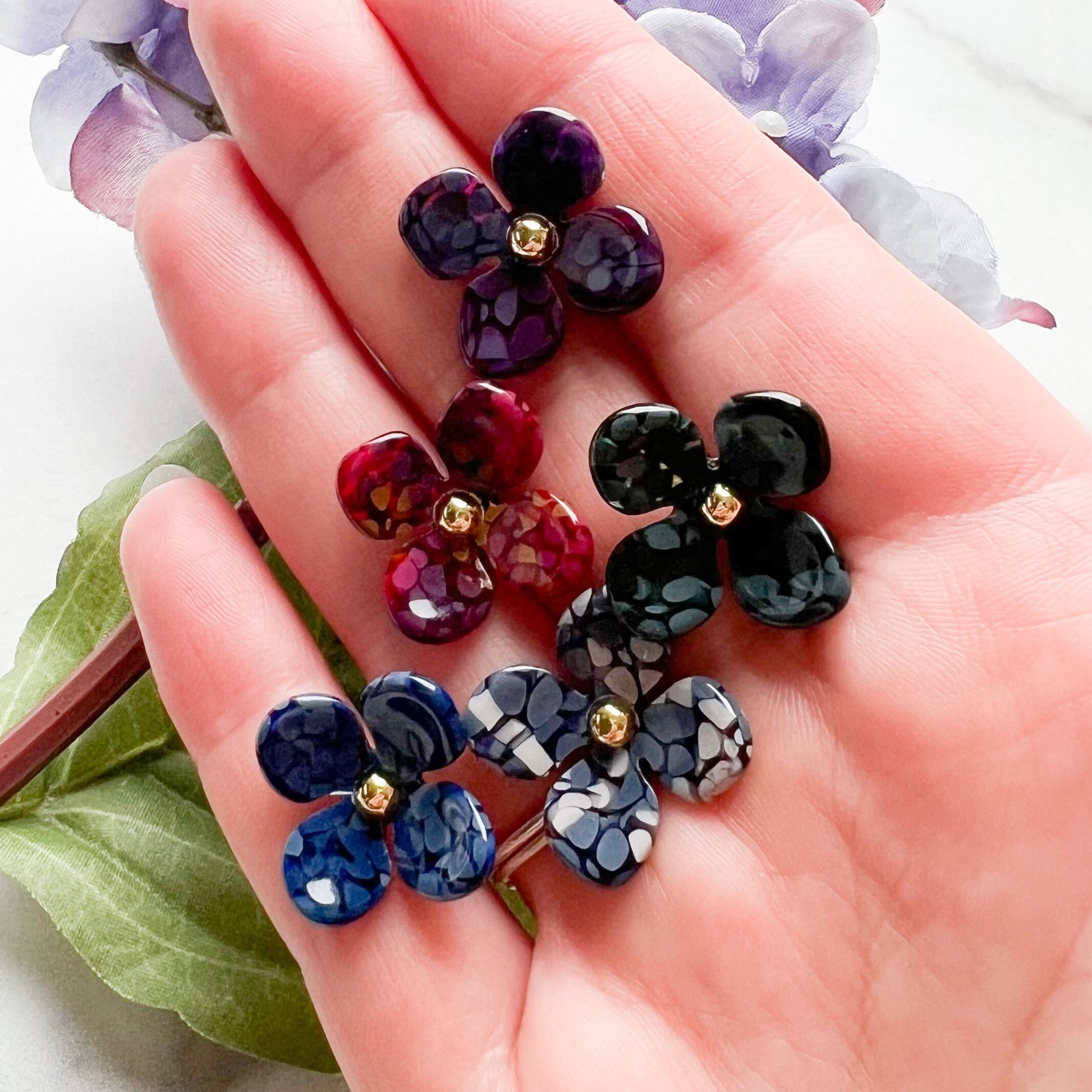 Hydrangea Flower Studs | Cellulose Acetate Colorful Resin Floral Stud Earrings 14k Posts Nickel Free