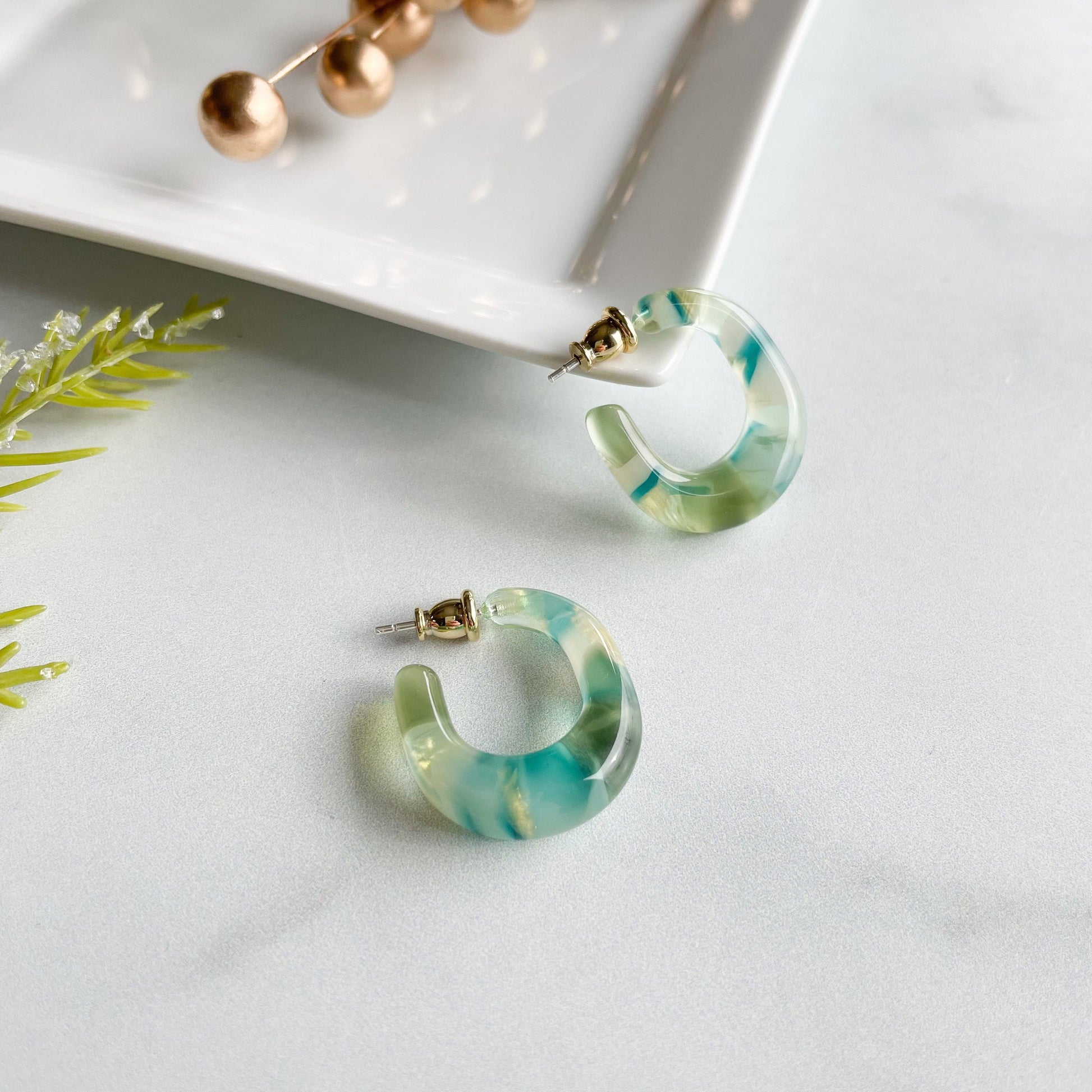 Juicy Hoops in Dew Drop | Green Blue Gold Hoop Earrings Chunky Thick Statement 925 Sterling Silver Posts
