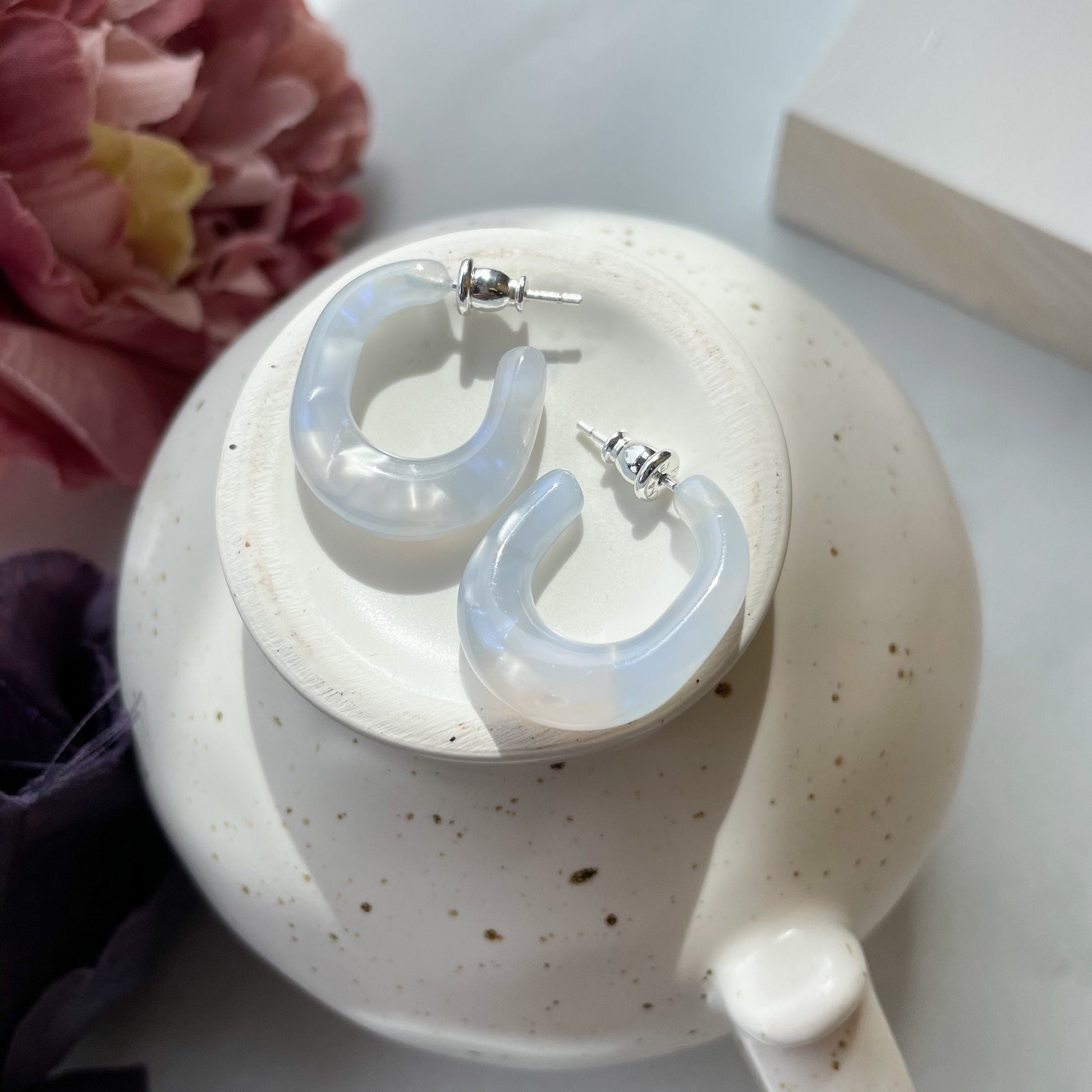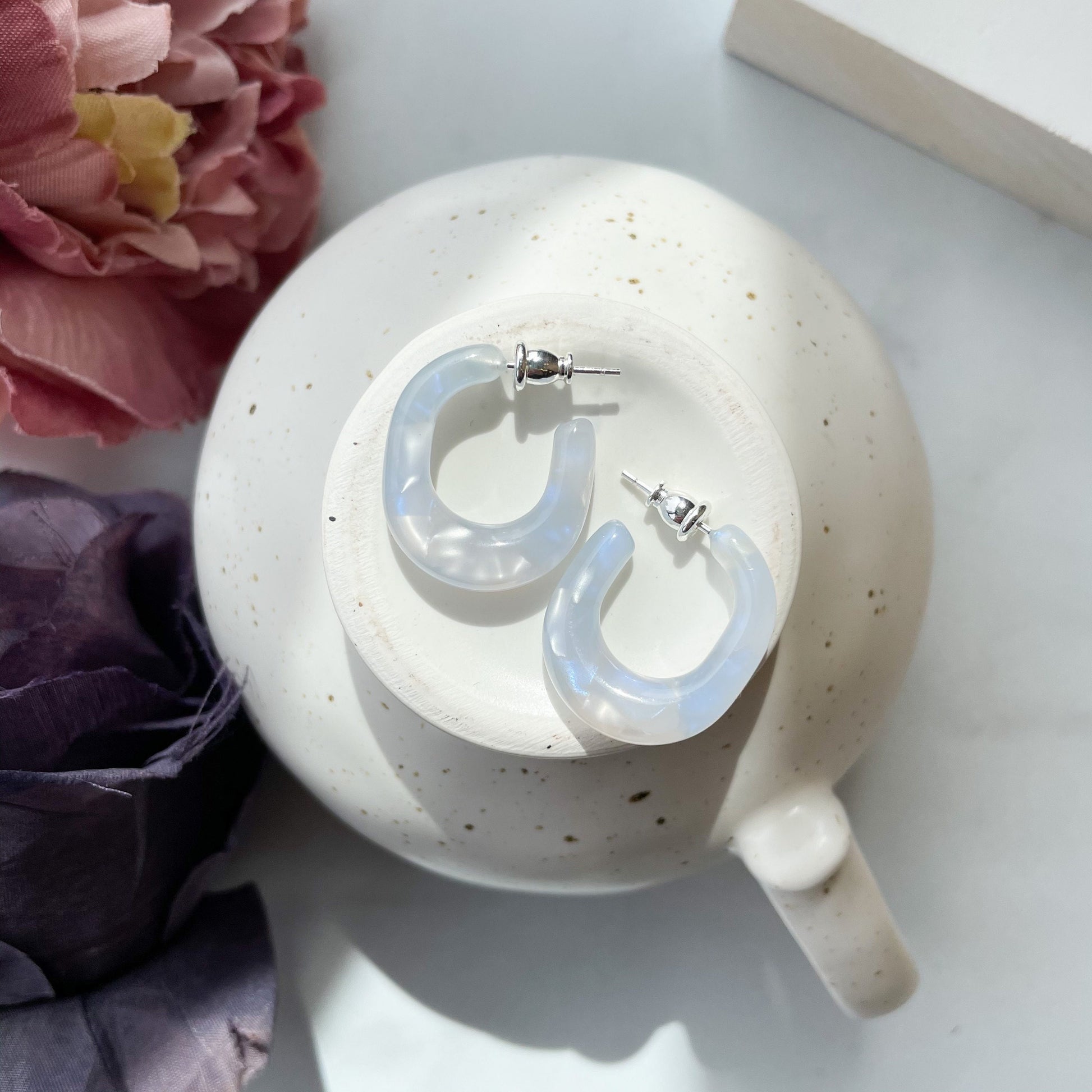 Juicy Hoops in Sky | Light Blue and White Pearl Hoop Earrings Chunky Thick Statement 925 Sterling Silver Posts