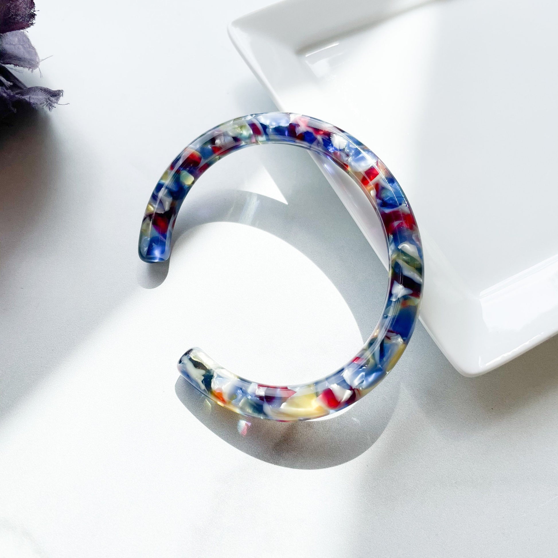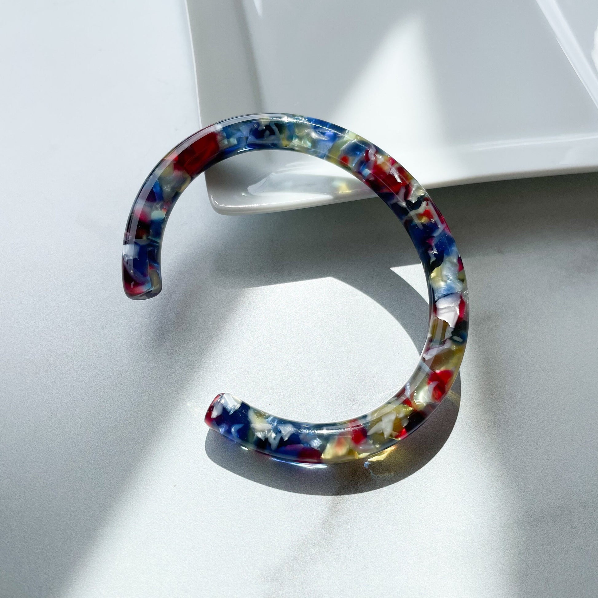 Lush Bangle Cuff in Stained Glass | Cellulose Acetate Colorful Red Blue Yellow Glass Thick Bangle Bracelets