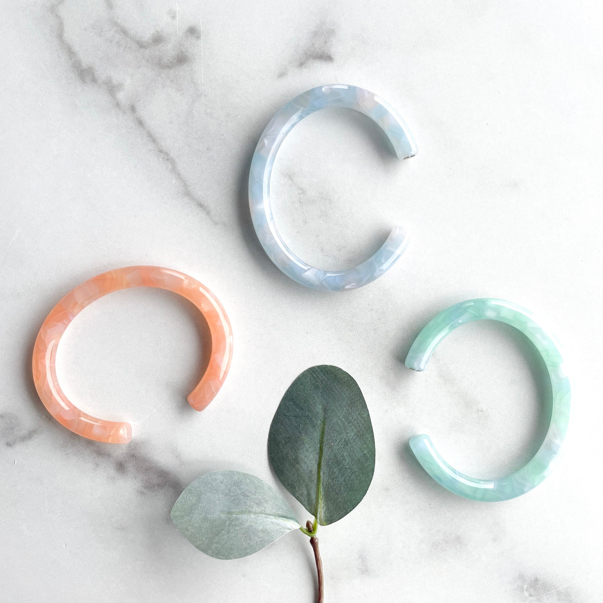 Lush Bangle Cuffs in Sky, Peach, and Lily Pad | Italian Acetate Resin Cuff Bangle Bracelet