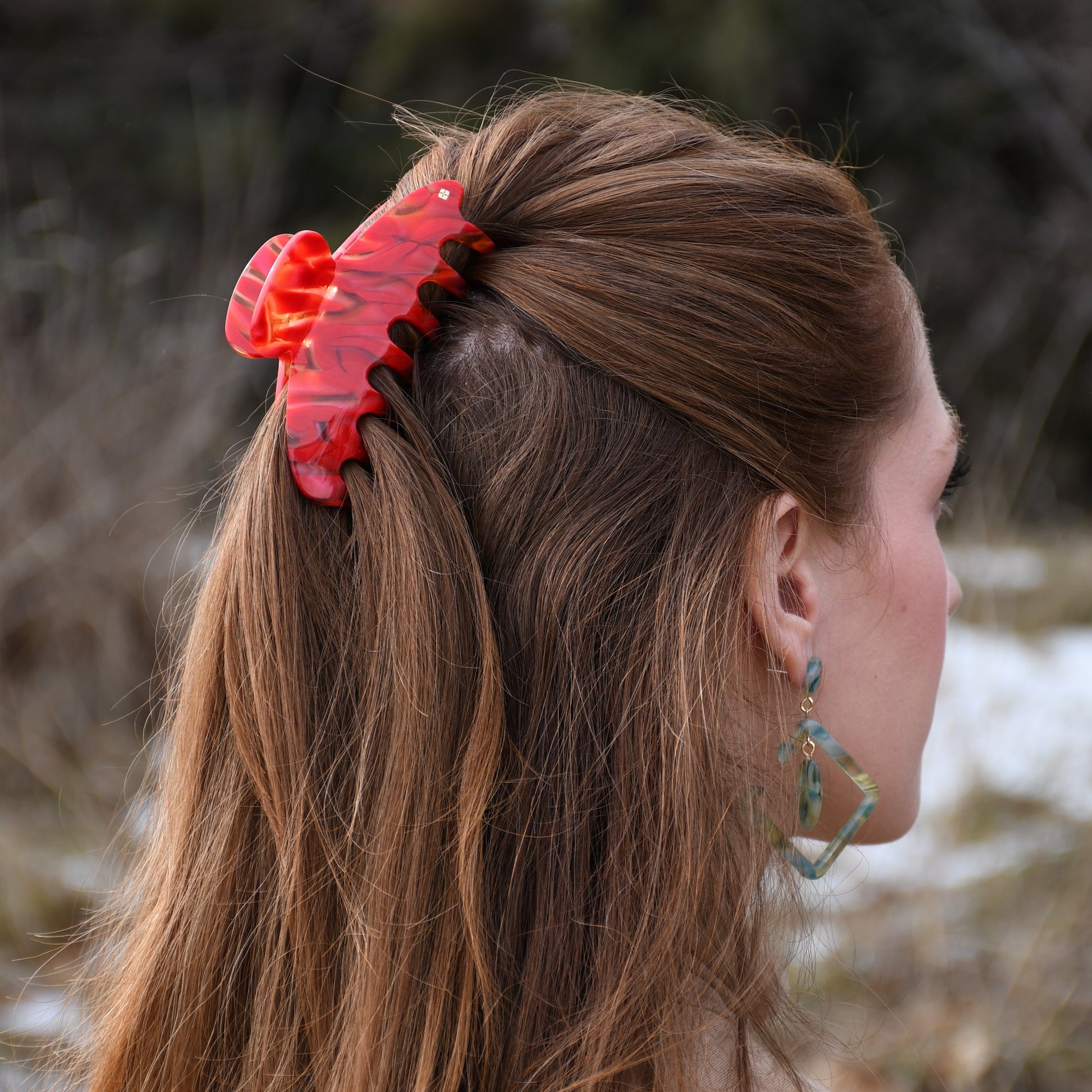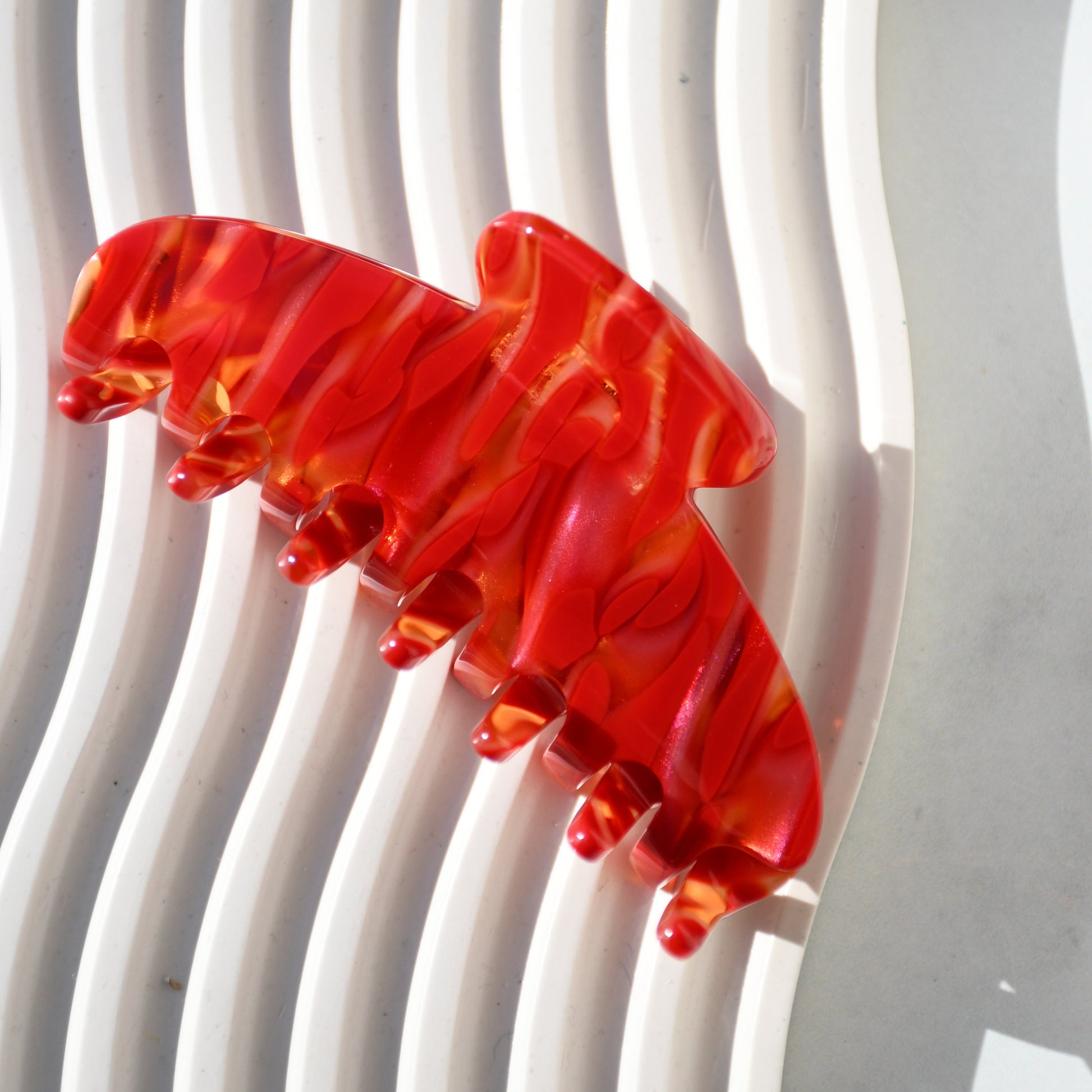 Oval Acetate Hair Claw in Hearts Fire | Red Hair Claws Acetate