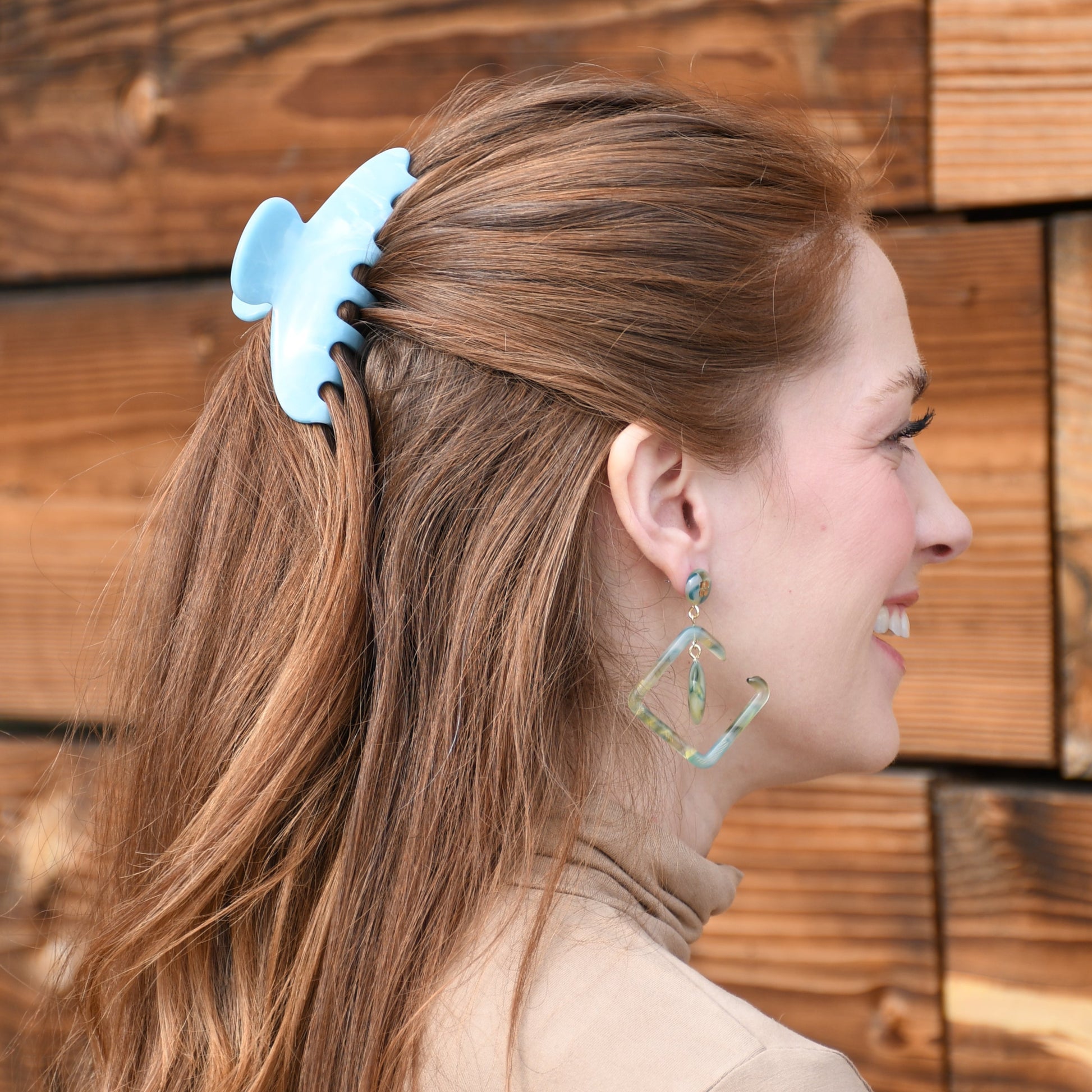 Oval Acetate Hair Claw in Leland Stone | Blue Hair Claws Acetate