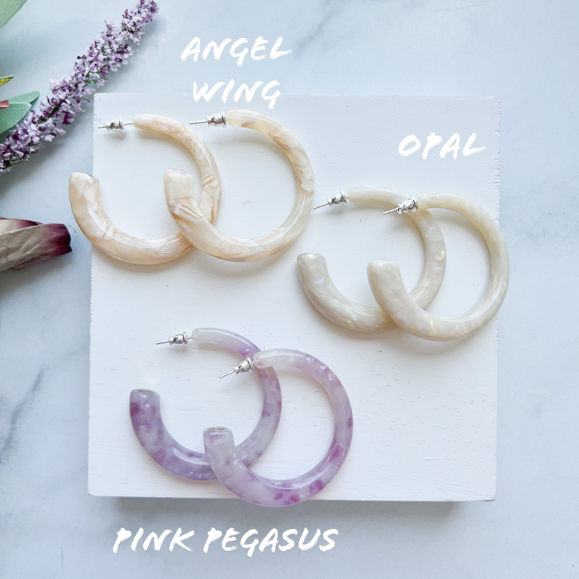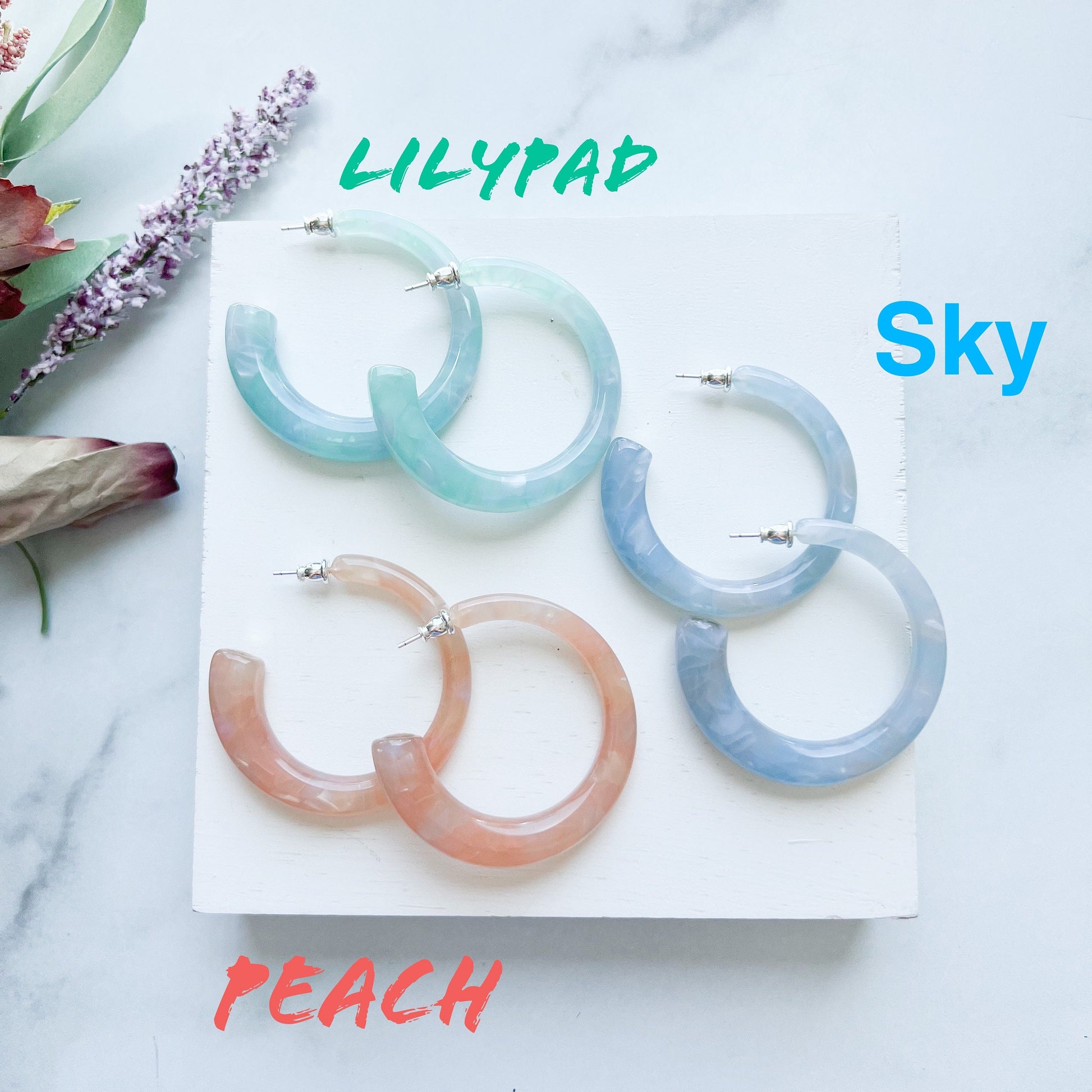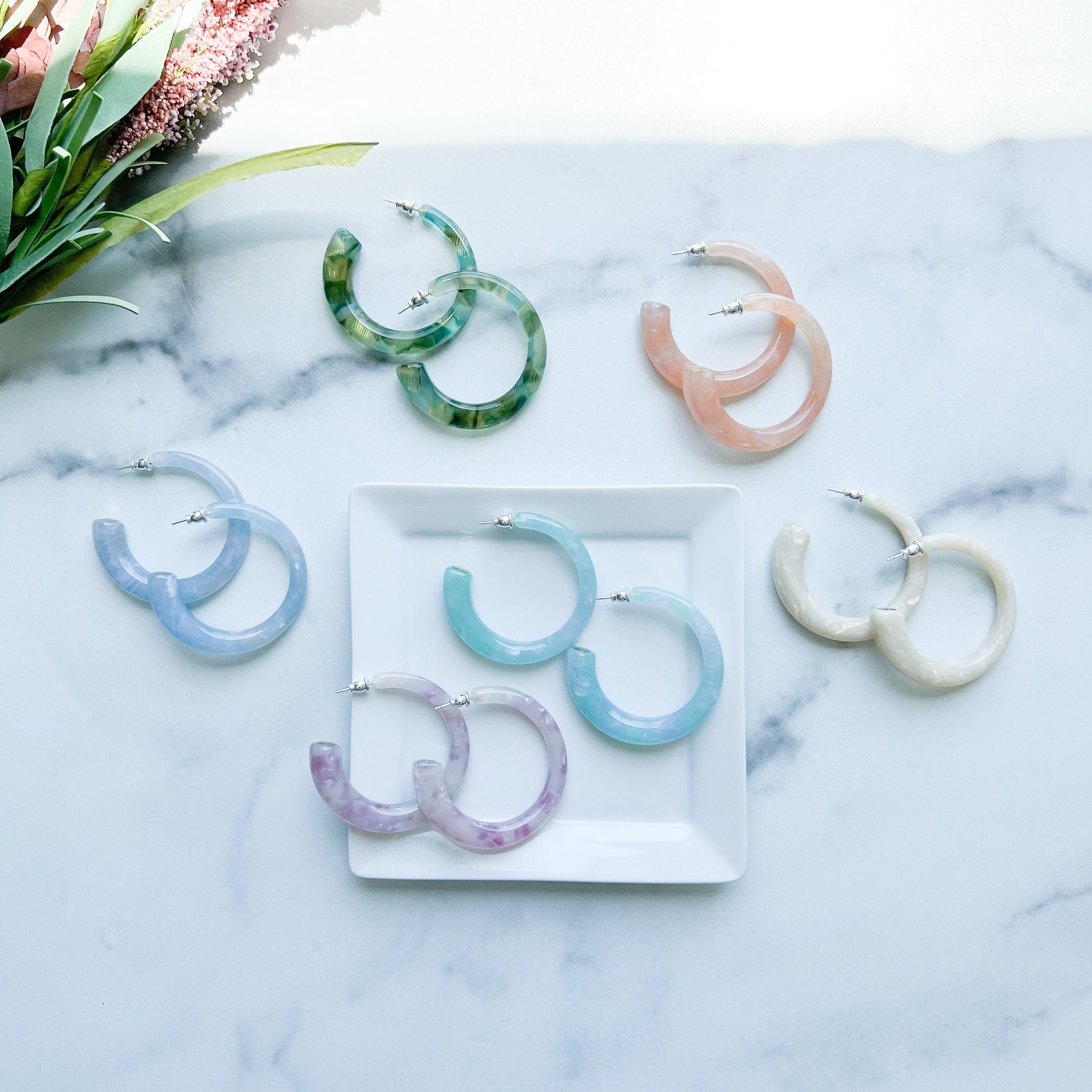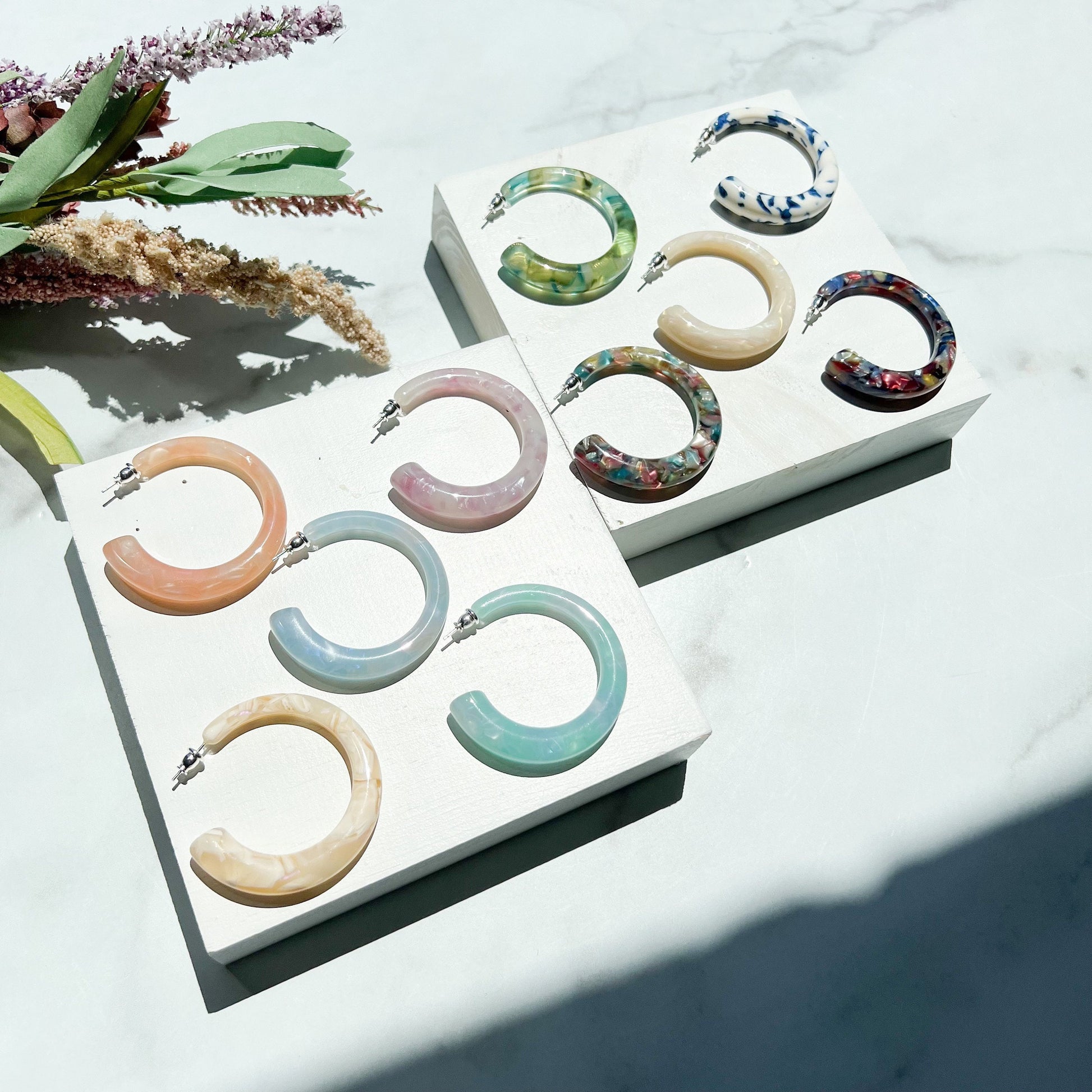 Sfera Hoop Collection | 55mm Large Statement Geometric Square Round Italian Cellulose Acetate Hoops 925 Sterling Silver Posts