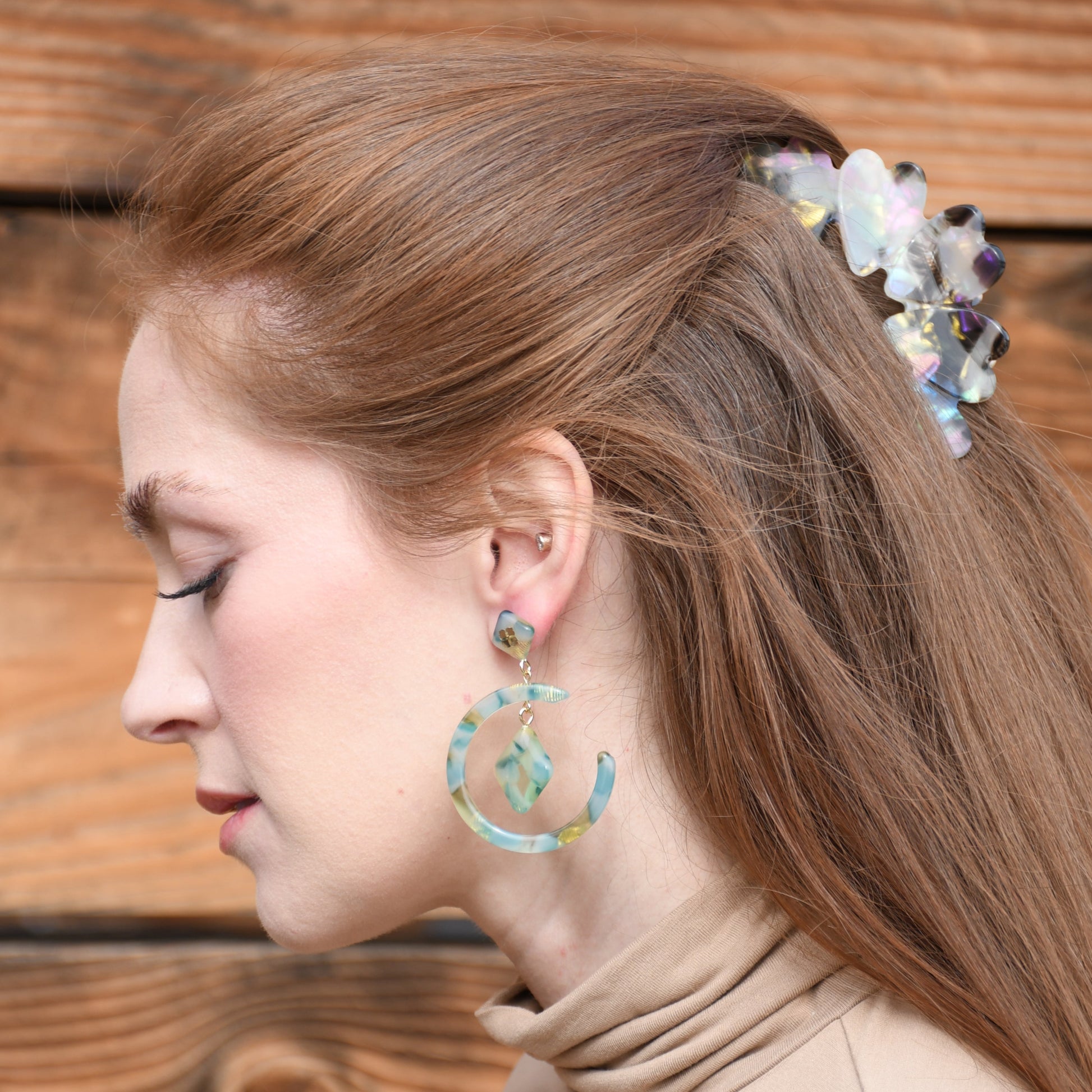 Spell Book Dangles| Mismatched Circle Diamond Italian Acetate Statement Drop Earrings 925 Sterling Silver Posts