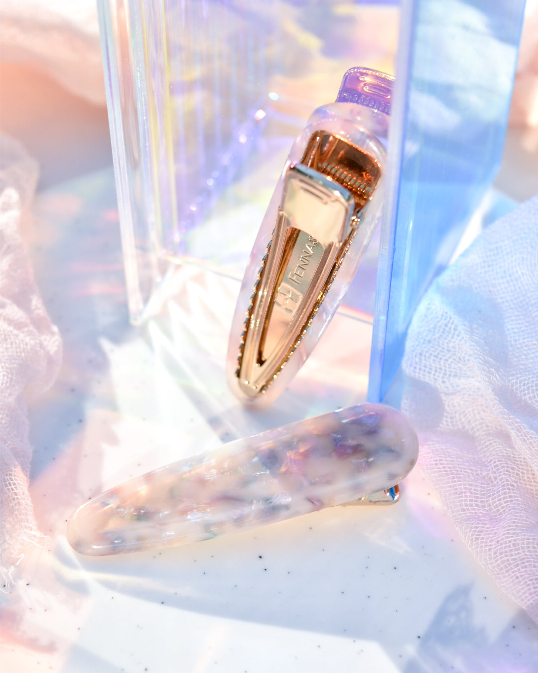 Waterdrop Clips in The Fantasy Collection | Teal, Purple, Pink Alligator Sectioning Hair Clips 2 Pack Cellulose Acetate and Stainless Steel
