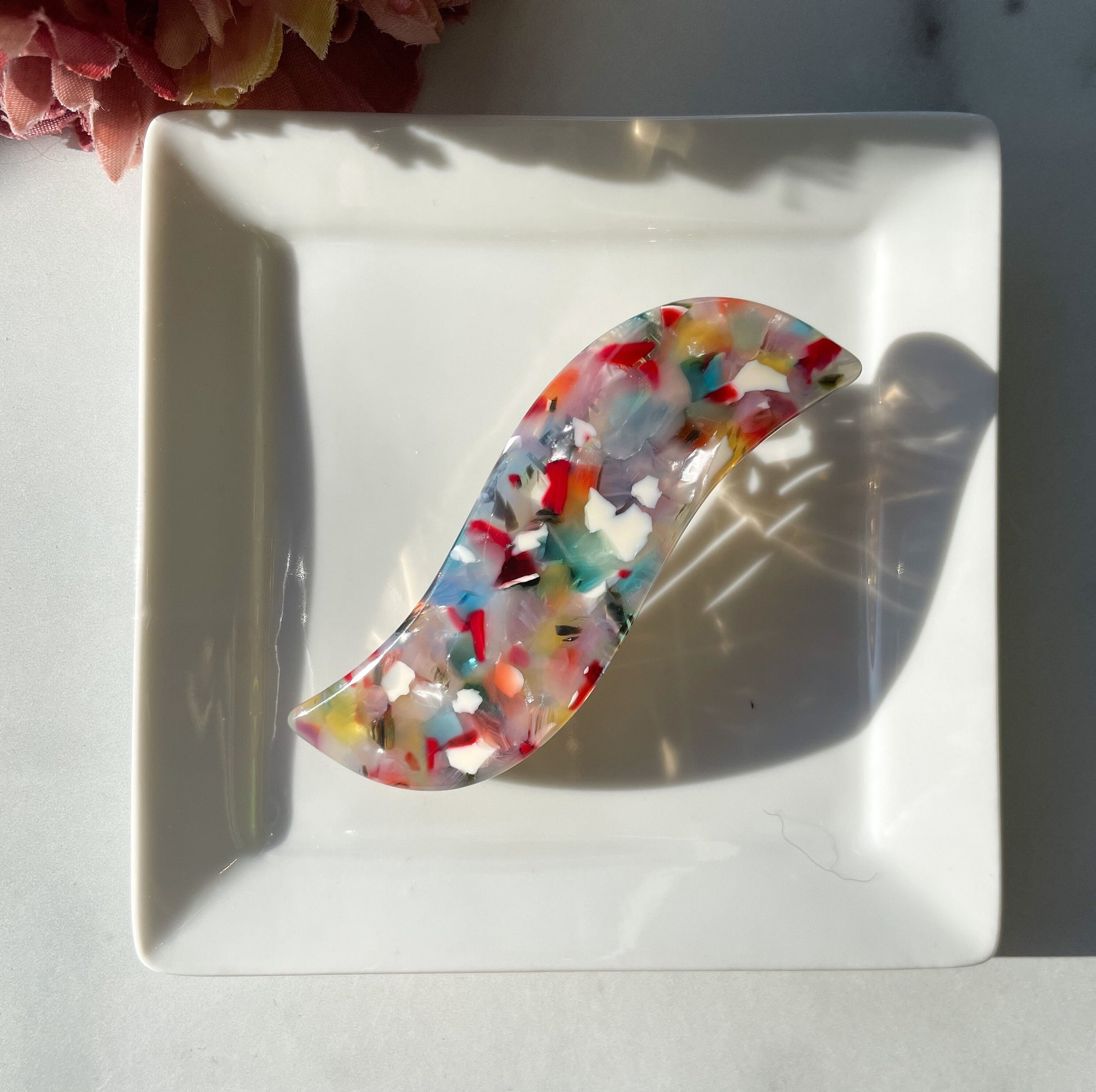 Wave Barrette in Rainbow | Colorful Paint Multi Colored French Barrette Snap Hair Clip Non Slip
